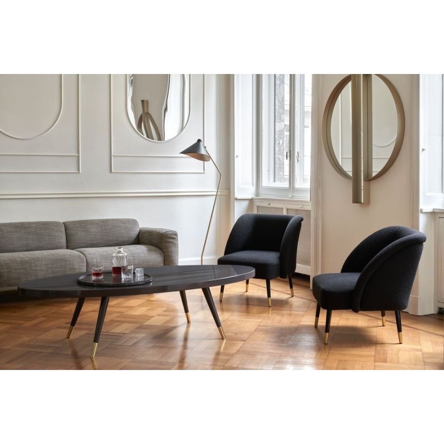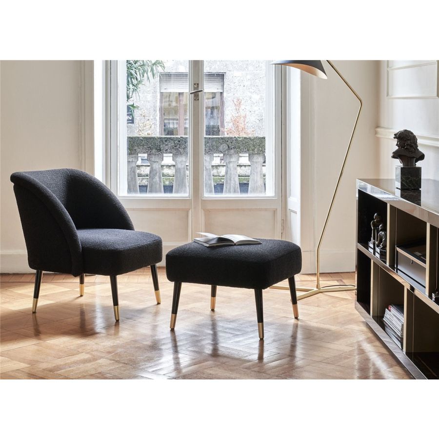 Pokrycie materiałowe dostępne w szerokiej gamie tkanin. Lakierowane nogi: mat / połysk. Metalowe nasadki: błyszczący mosiądz, satynowy mosiądz, błyszczący chrom, brąz, stop cyny lub przydymiony brąz.| Wymiary (wys. x szer. x gł.): | cm: 78x64x68 / inch: 30.71"x25.2"x26.77" |