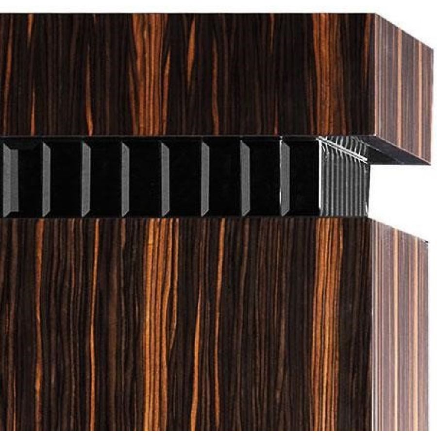 Interior in matt black wood and mirror.
