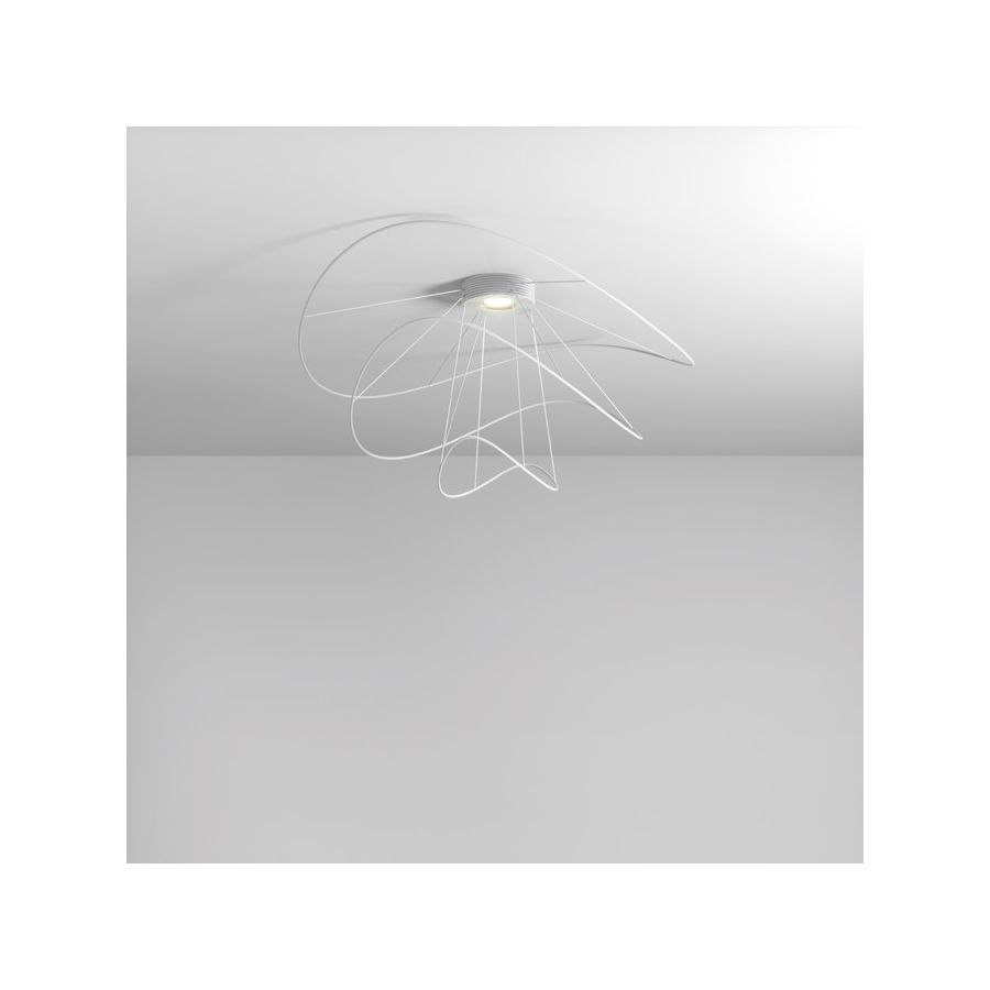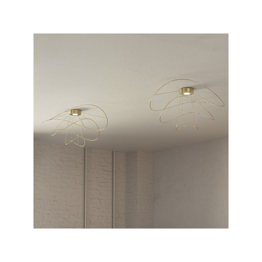 Hoops captivates with its flowing lines that orbit a central core, creating a dynamic play of form and light. Its graceful movement invites the eye to follow, revealing new perspectives from every angle. Available in pendant and ceiling versions, it enchants with its ever-evolving visual elegance.