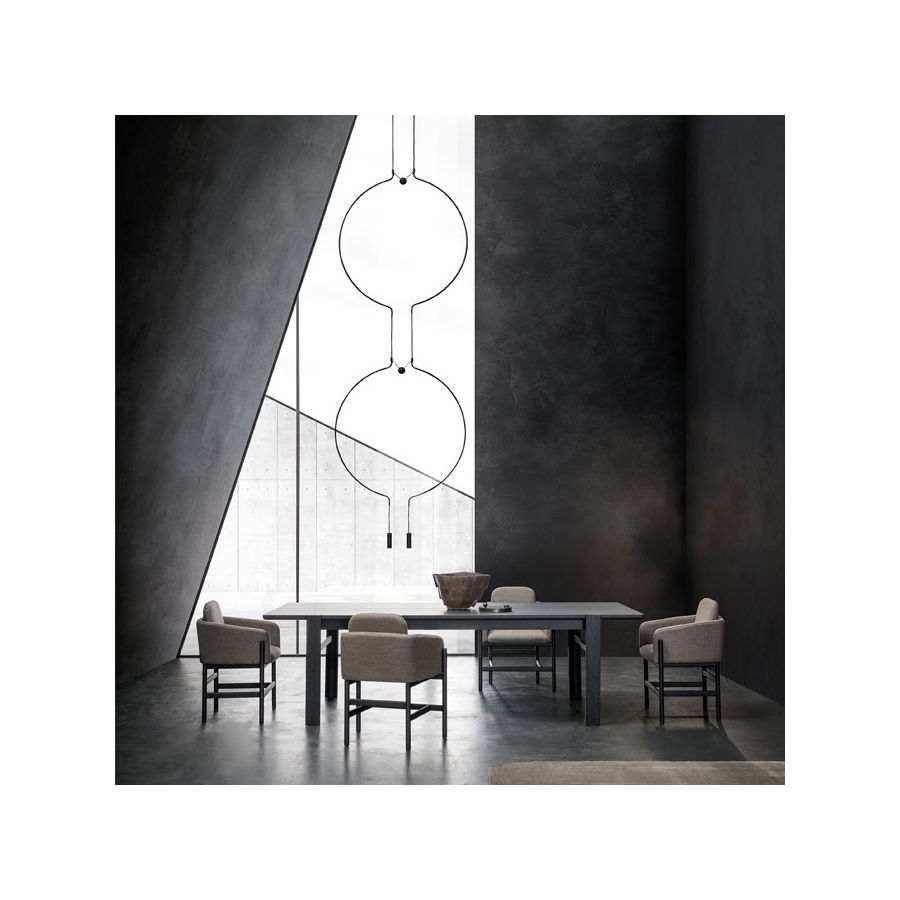 Liaison is a distinctive suspension lamp that artfully combines three geometric forms – sphere, circle, and cylinder – into a light, elegant structure. Handcrafted in metal with refined finishes, it exudes sophistication and character. Available as a single pendant or in multi-light compositions, Liaison offers versatile illumination for any space, seamlessly blending aesthetics with functionality.