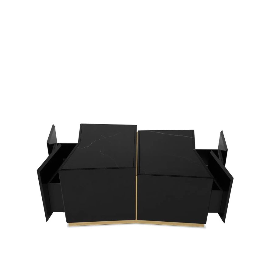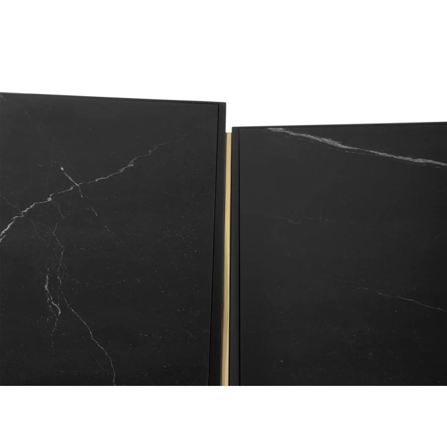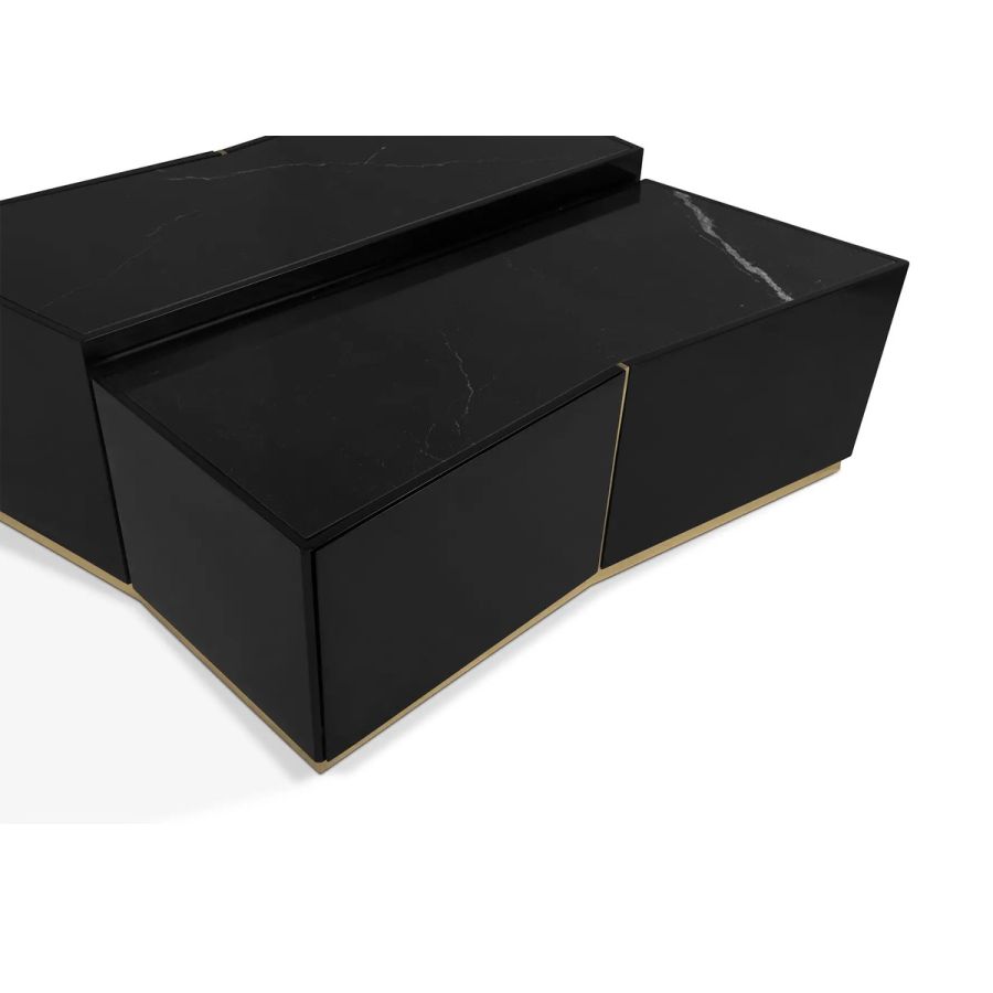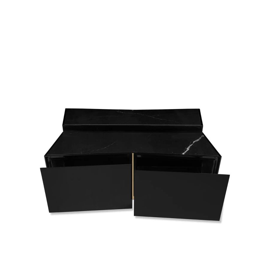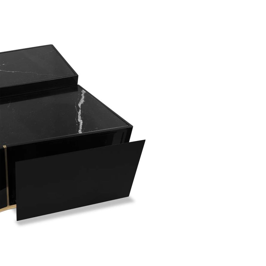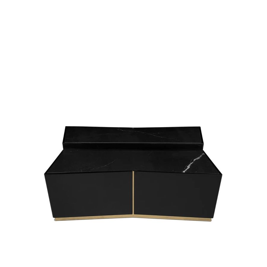 An impressive display of elegance, the Beyond Center Table showcases its exquisite capacity to enhance any ambiance with its luxurious presence. Made with a delicate combination of polished brass, wood, and a Nero Marquina marble top, this modern center table is an alluring centerpiece for any living room or hospitality project.