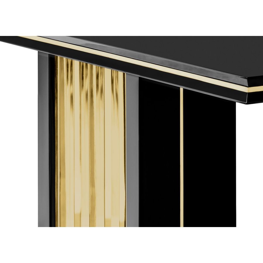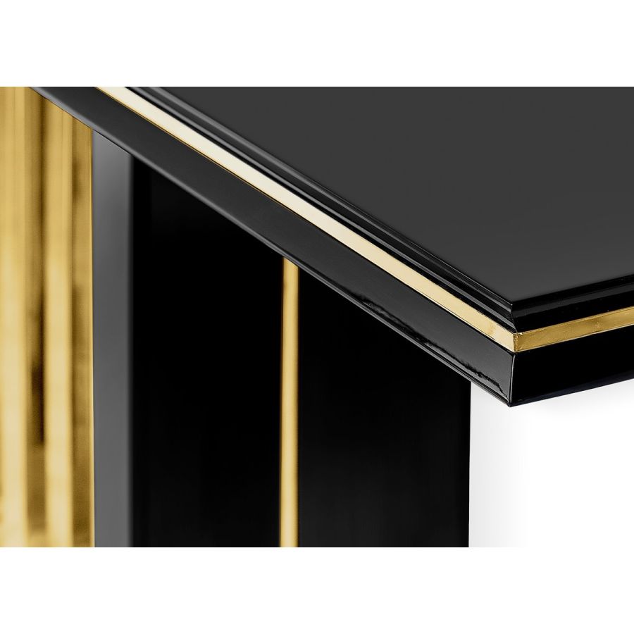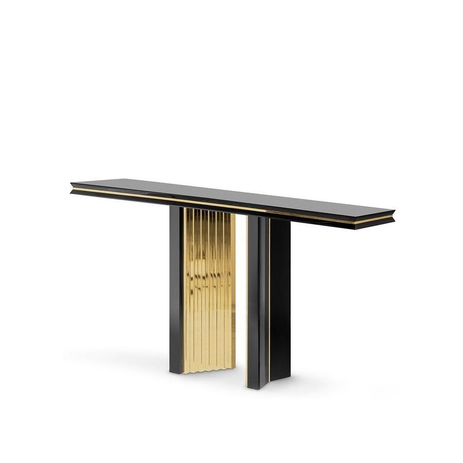 The best handmade techniques find balance in delicate woodwork softened with touches of brass, reflecting warm and golden tones on its polished surface. An impressive display of elegance, the Beyond console table, shows its exquisite capacity to fill a variety of ambiances thanks to its luxury presence.
