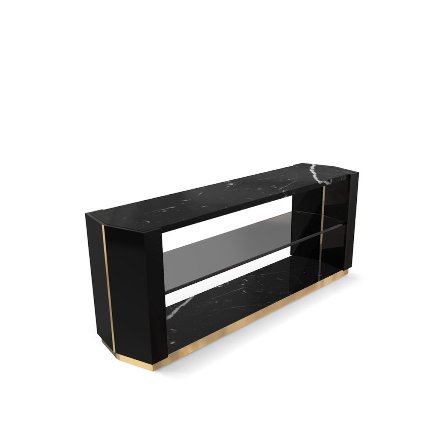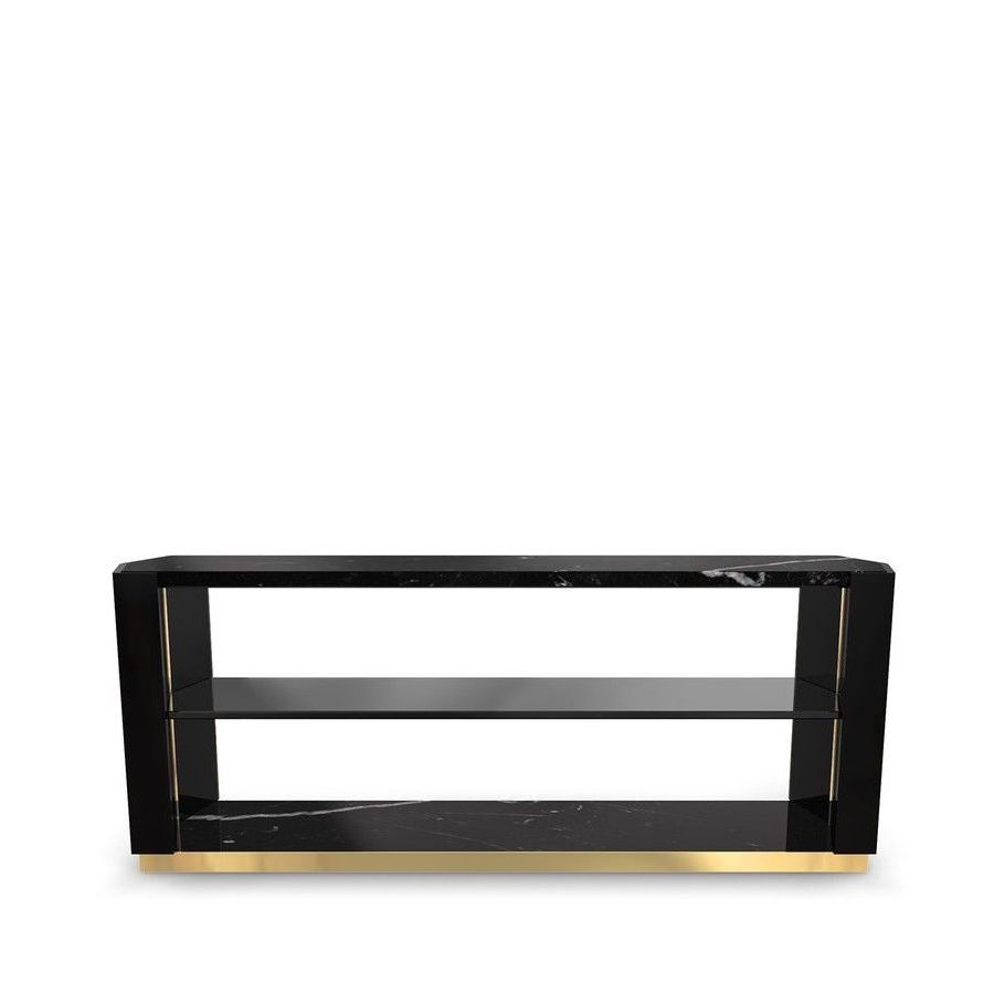 The Beyond Long Side Table is an exquisite display of simplicity, craftsmanship, and luxury combined into one piece. This refined work of brass, wood, smoked glass, and marble comes together in an impressive showcase of elegance, becoming the centerpiece of any space.