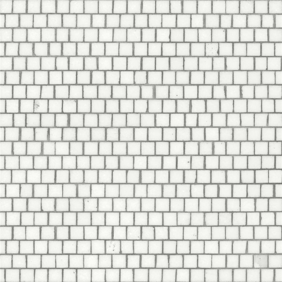 Marble mosaic made with honed hand-cut tesserae, measuring 1,5x1,5 cm, with matt finish, and staggered joints of approximately 2 mm. Sheets supplied in size 34,8x35 cm.