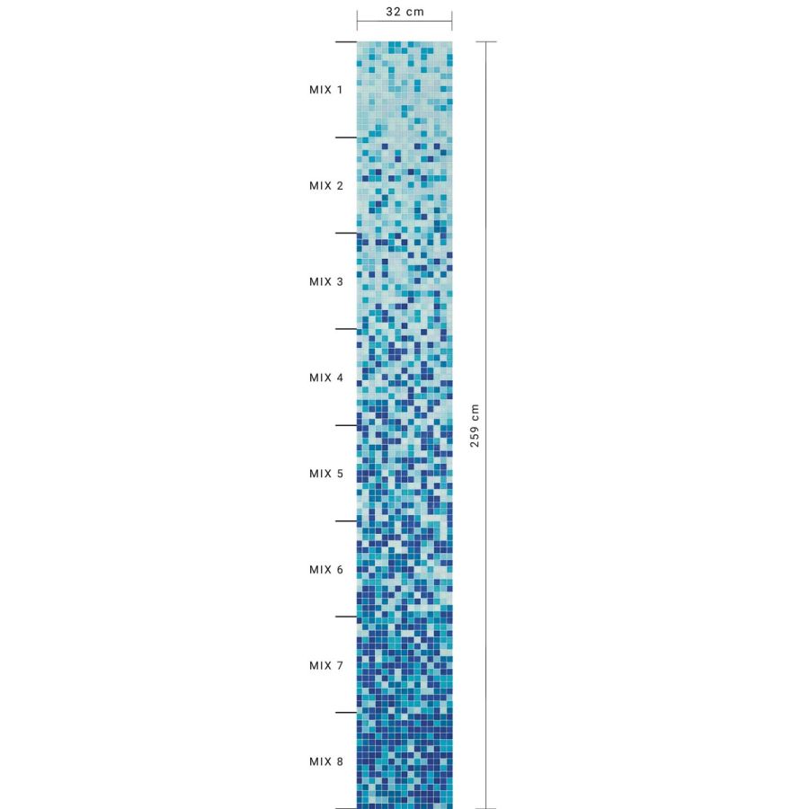 The ortensia whiteless shading blend is a sequence of mosaic blends arranged in a gradation from light to dark, made with 20x20 mm glass tiles. The shading blend is made up of 8 sheets, with one mix per sheet (mix 1, mix 2, etc.), For an overall height of 259 cm. The individual mixes of the standard shading blends can be sold per sqm. This item is sold by the module. Module dimensions: 0.32x2.588 m (0.83 sq. m). For any customizations, click on “Request information”.