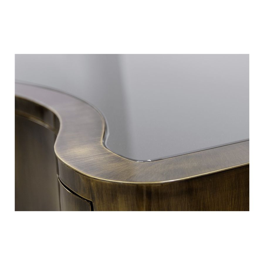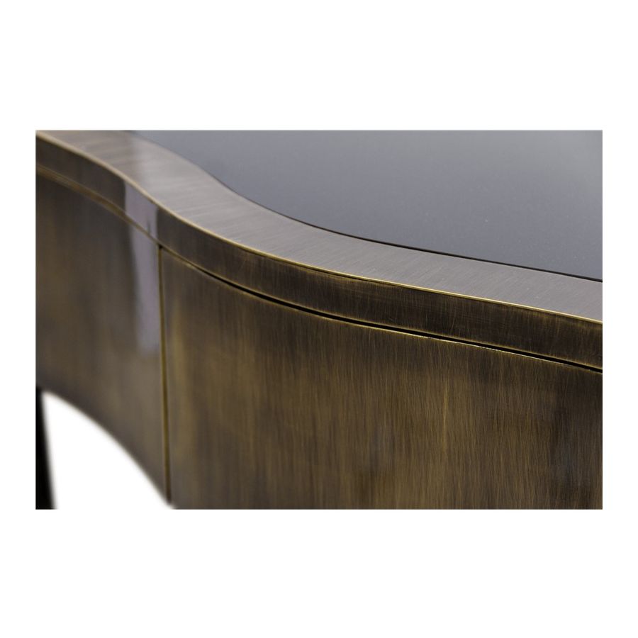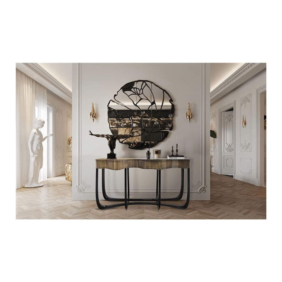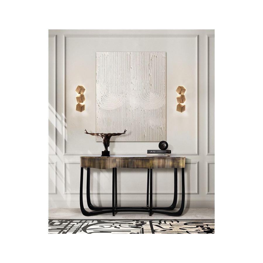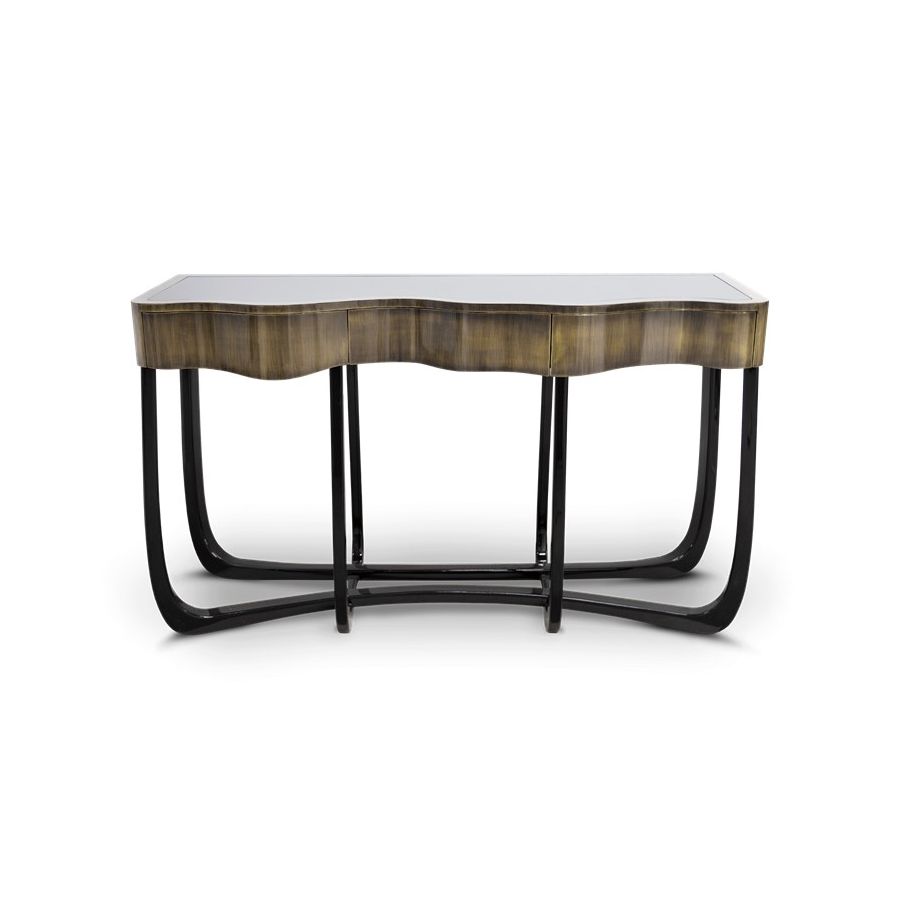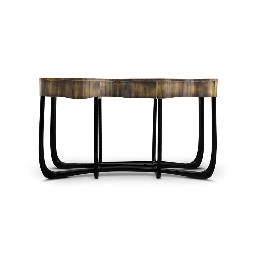 With Sinuous Patina Console you will successfully create a luxurious environment. Sinuous is made for those who love harmonious lines mixed with exquisite detail. Its design is seductive and lures you into a magical and golden world. To achieve extravagance, Boca do Lobo’s artisans handcrafted the structure in mahogany with a high gloss black lacquer finish and top coated in polished brass plated, bringing up the vivid and bright side of Boca do Lobo. This luxury furniture design contains three drawers, adding function to the unique piece.