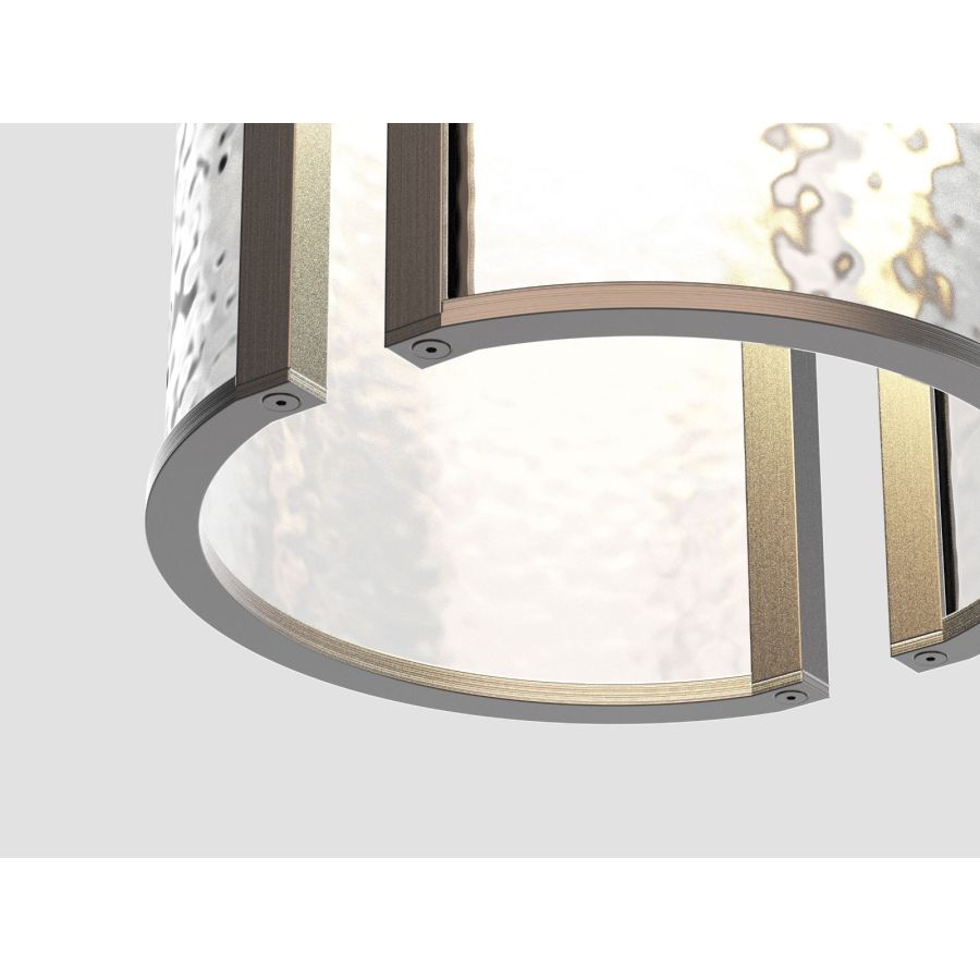 The Duet Sconce utilizes a brass form and negative space in the glass to create a focal point to promote the presence of absence. Available in either a textured white opal art glass or a textured clear art glass. Designed by Jake Oliveira.