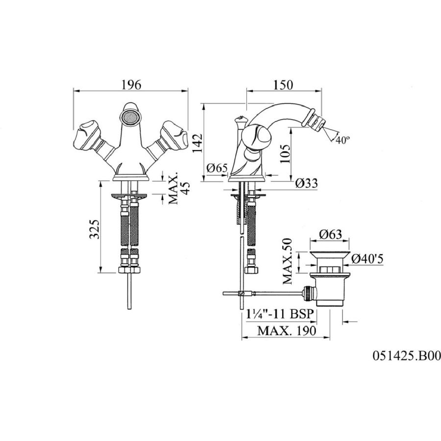Bronces Mestre / Bidet Fittings / One hole bidet mixer 051425.B00.00
