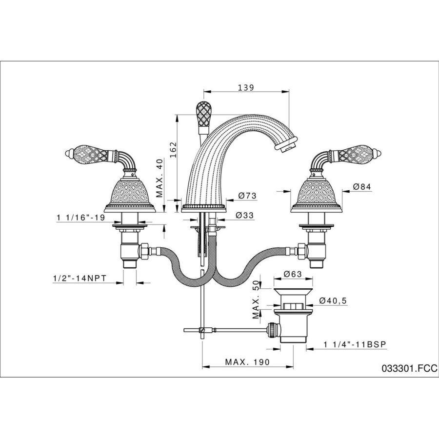 Bronces Mestre / Washbasin Fittings / Three holes wall basin set 033433.C00.50