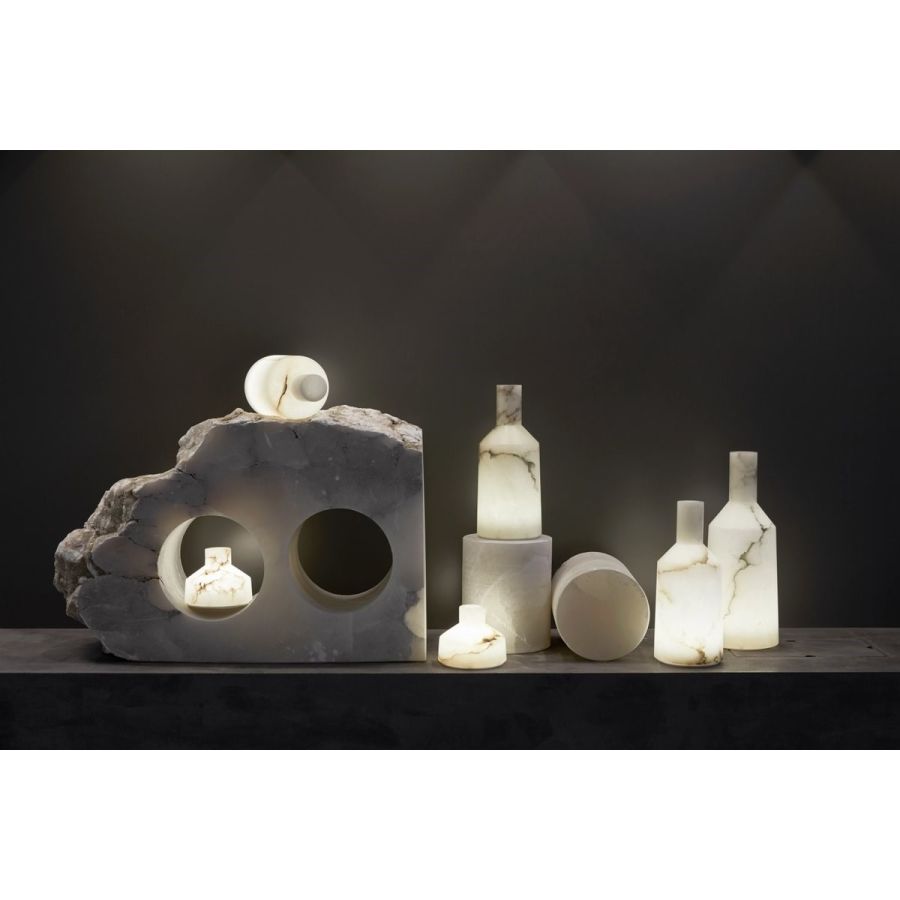 Alabast celebrates the natural beauty of alabaster, a material known for its translucent texture and unique veining. This lamp projects a warm and enveloping light, enhancing the natural characteristics of each piece. Designed to bring together art and functionality, Alabast is ideal for spaces seeking a touch of exclusivity and sophistication.