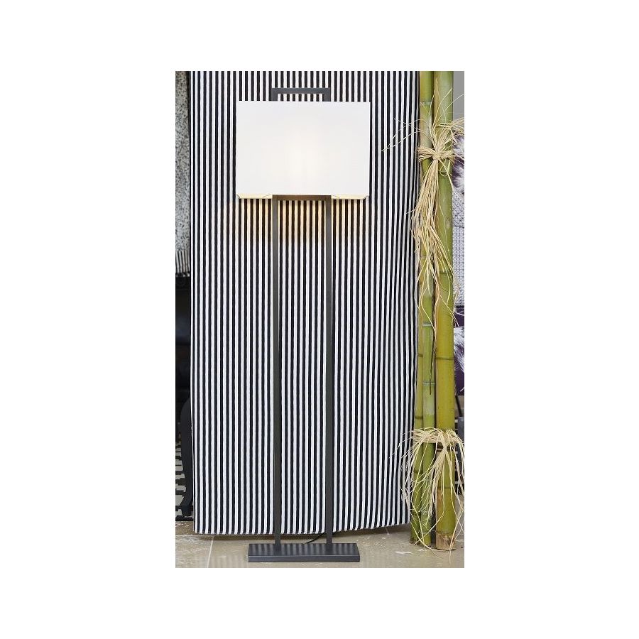 Floor lamp in brass. Made with a rectangular frame on a rectangular base, the lamp shade is inserted in the frame. This contemporary floor lamp gives a original design to your interior. Available in black patina. Presented lamp shade in grey linen in a rectangular shape (see other available shapes and colours).