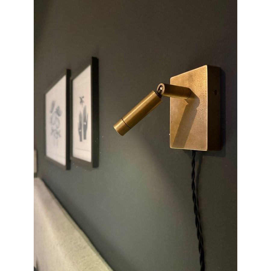 Wall light with Led light made in brass. Made with a led head fixed with a rotating kneecap, on a rectangular base without switch. This reading wall light gives a sober and elegant design, and an efficient direct light. Available in black or matt gold patina, and in nickel or brushed nickel.