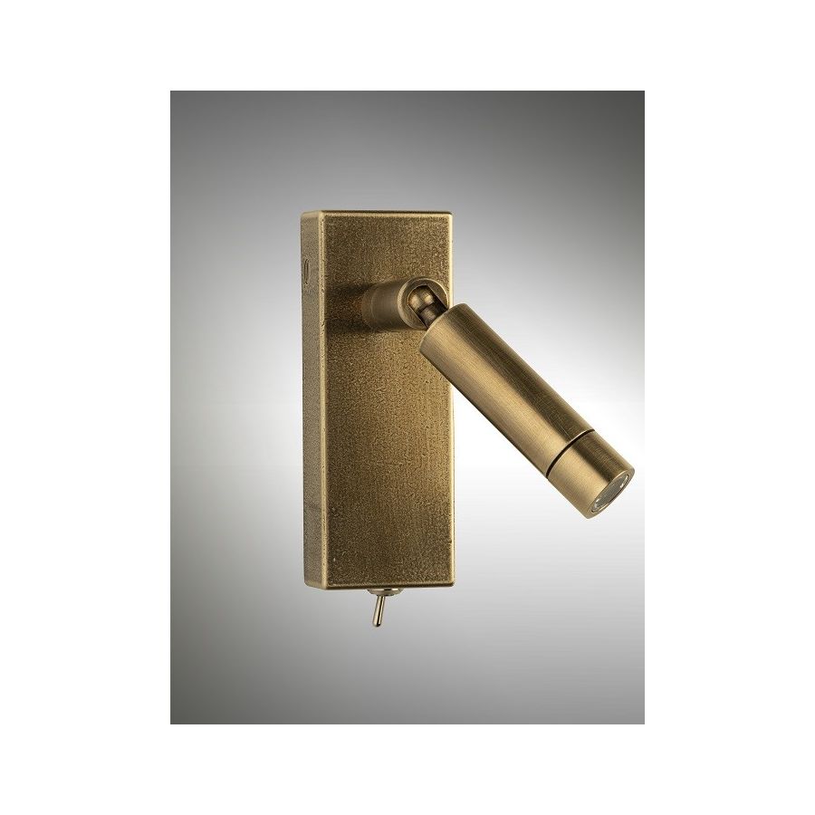 Wall light with Led light made in brass. Made with a led head fixed with a rotating kneecap, on a rectangular base with switch. This reading wall light gives a sober and elegant design, and an efficient direct light. Available in black or matt gold patina, and in nickel or brushed nickel.