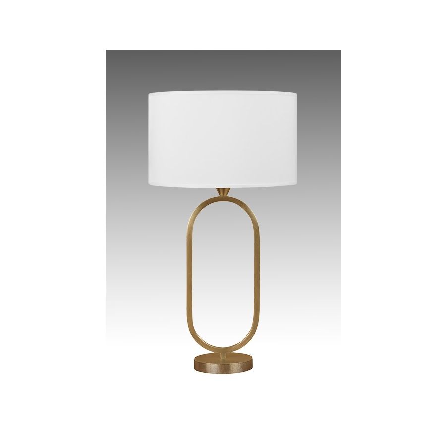 Table lamp made in brass It is made with a square tube forming an harmonious oval on a round base This lamp with an elegant design nicely decorates a living room, a bedroom or an office Available in black or matt gold patina Also available in larger size (L203B) Presented cylindrical shade in white cream chintz (see other available colors).