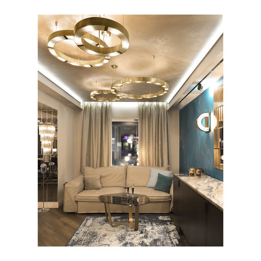 Ręcznie wykonana mosiężna oprawa to nowoczesna, świetlna deklaracja samoekspresji, przejawiająca się luksusowymi akcentami.