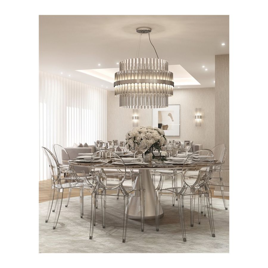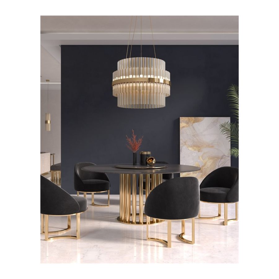 Wysoce dekoracyjna i elegancka, ta luksusowa oprawa oświetleniowa doskonale pasuje do nowoczesnych salonów i dużych jadalni. Ogólnie rzecz biorąc, Zawieszenie Halma z pewnością przyciągnie uwagę twoich gości.