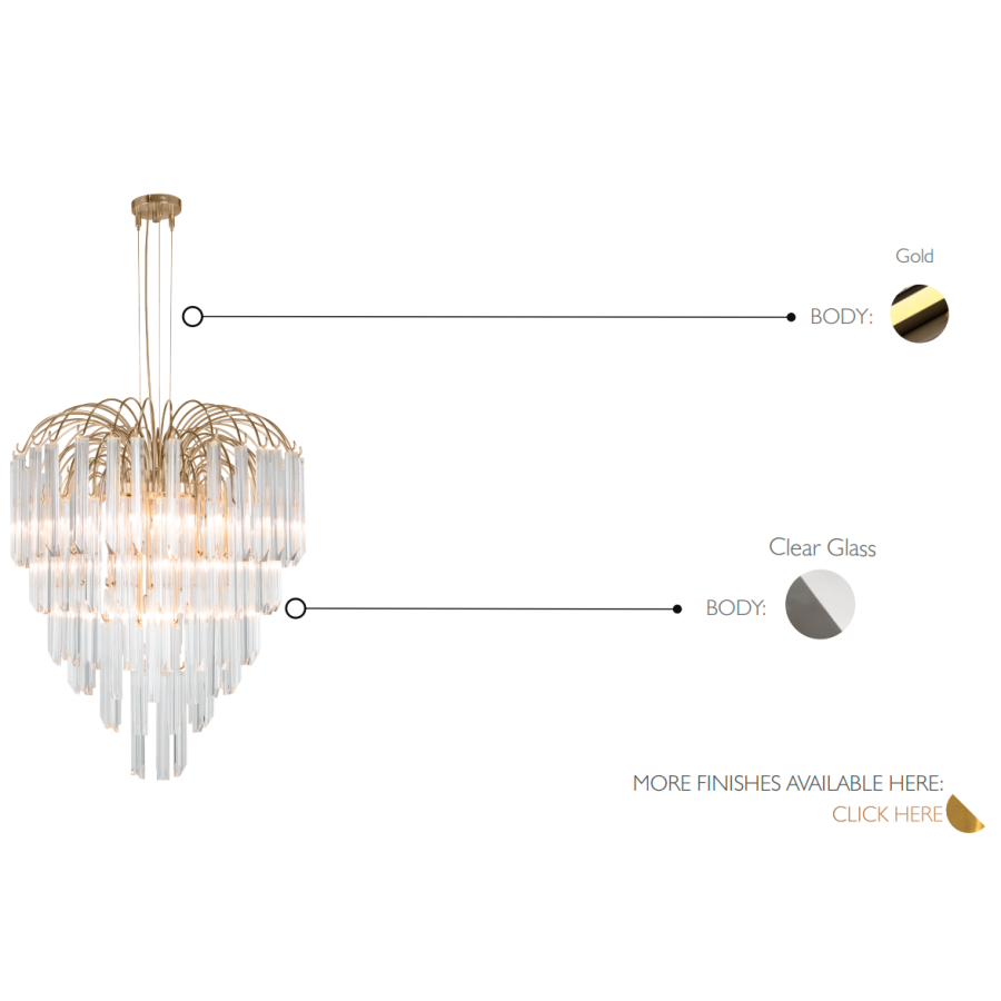 Lotus Suspension ma za zadanie oddać tę prostotę i przepych, gdyż jego projekt i forma są niemal identyczne z prawdziwym kształtem lotosu, włączając jego luksusowy wymiar. Zastosowanie szlachetnych materiałów i cennych tradycyjnych technik wytwórczych czyni ten żyrandol wyjątkowym, gdyż ramiona z 24k złota z delikatnym szkłem zwiększają złożoność wizualną. Szkła przypominają nam spokojnie opadające płatki kwiatu, które odzwierciedlają jego prostotę, a także odcienie elegancji i piękna.