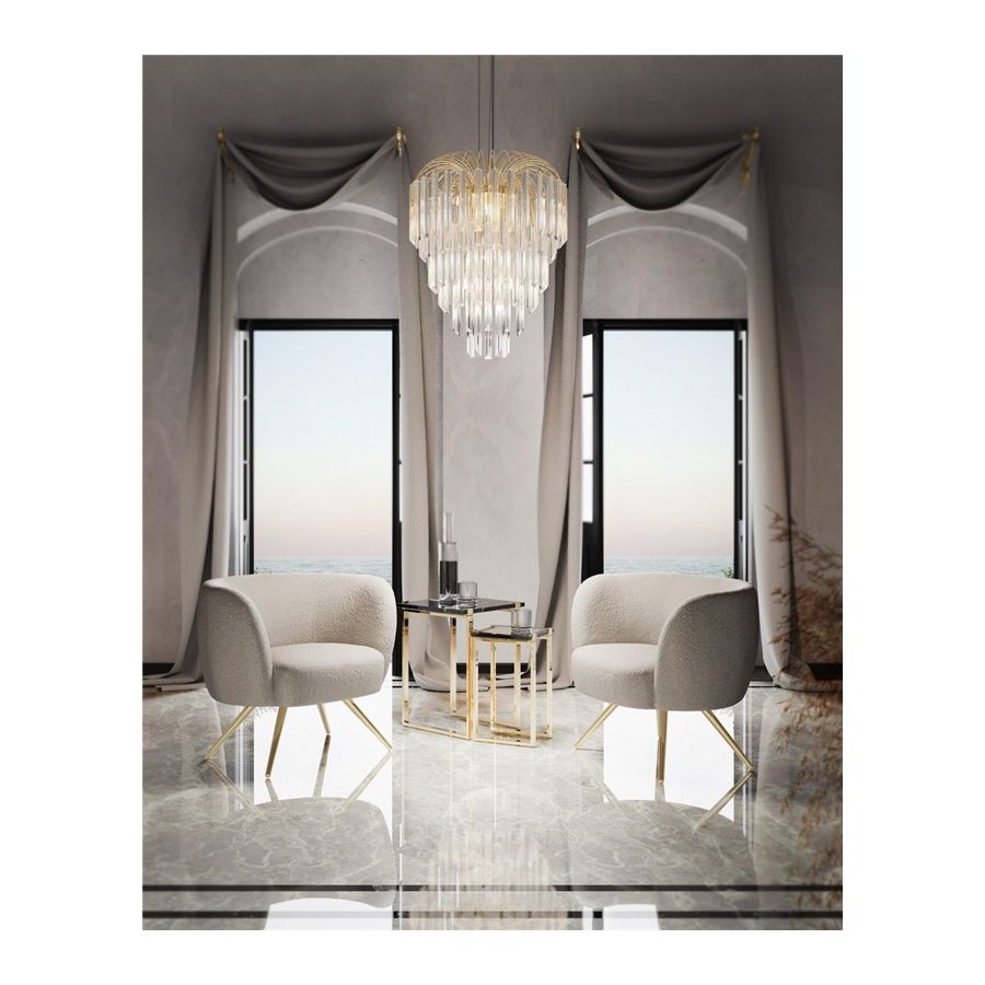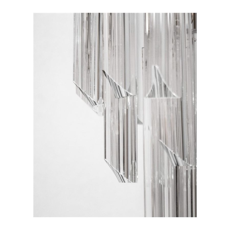 Ta kolekcja ma stać się najważniejszym akcentem wszystkich wnętrz, ponieważ zawiera zapadające w pamięć, wyraziste elementy, zdolne stworzyć unikalną i ekskluzywną atmosferę, w której świetlne formy rozprzestrzeniają się przez różne szklane elementy.