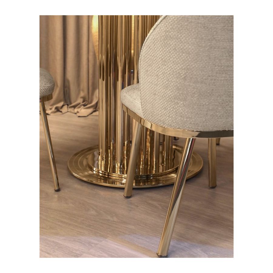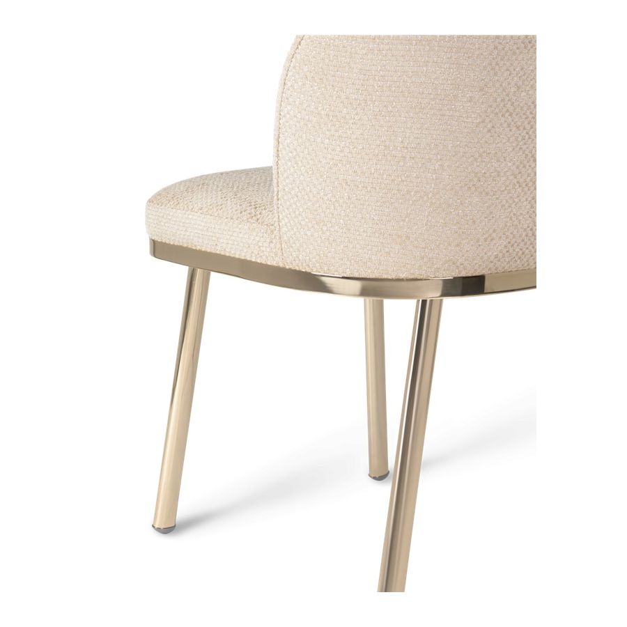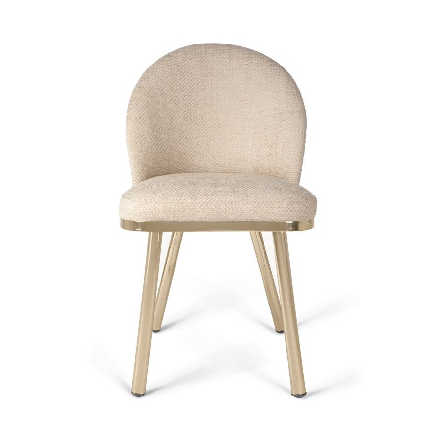 To eleganckie krzesło ma nogi z polerowanego mosiądzu, które nadają mu całkowicie ekskluzywny i luksusowy wygląd, nadając bryle uwodzicielski charakter.