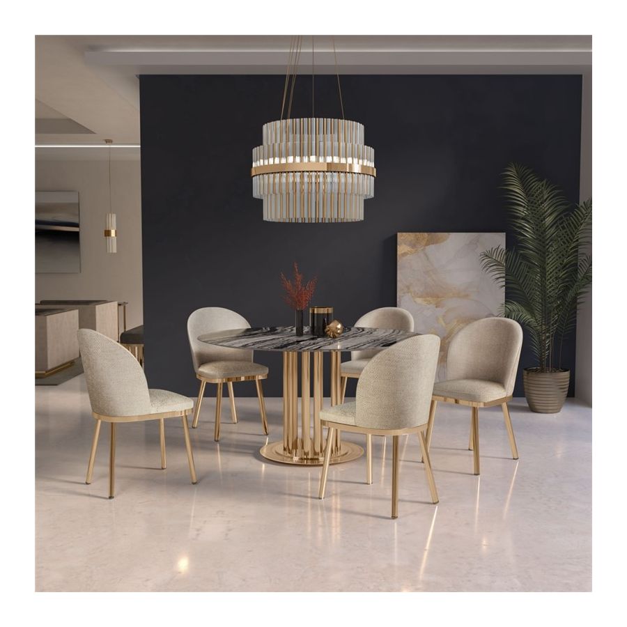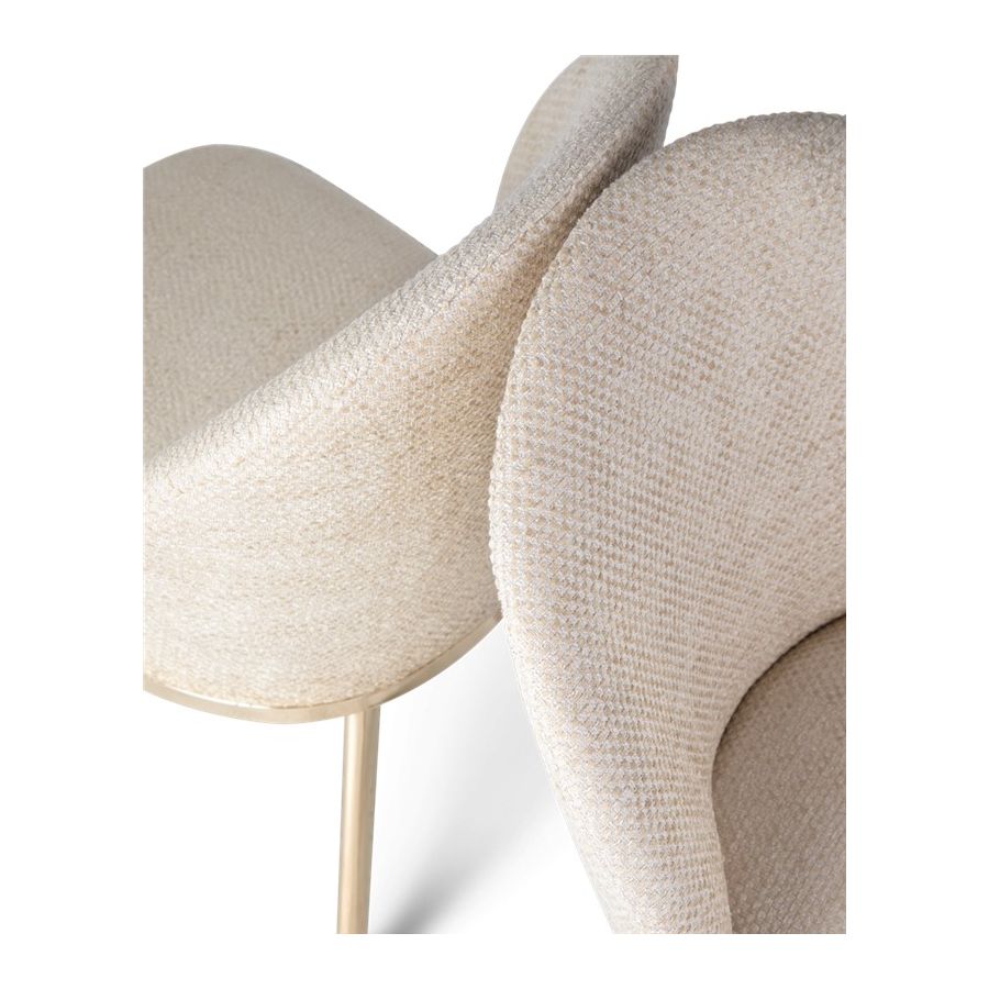 Wykorzystuje także bogate materiały, takie jak tkanina, pozłacany mosiądz, z odczuciem art déco, co czyni Penelope luksusowym, ręcznie wykonanym krzesłem, dodającym tapicerce młodości.