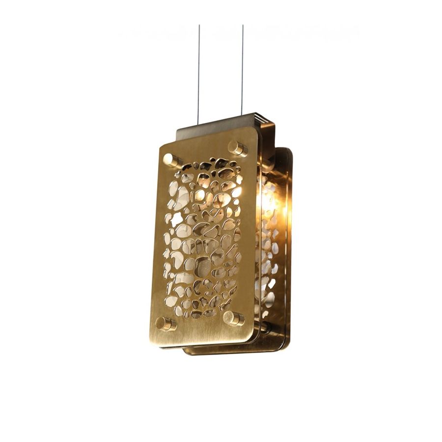 Kluczowym wyróżnikiem tej kreacji oświetleniowej jest jej ekskluzywny wzór żyrafy, wykonany ręcznie z najwyższą dbałością o szczegóły przez profesjonalnych rzemieślników. Każda mosiężna płytka to prawdziwe arcydzieło projektowe, które zawiera brązowe szkło łagodzące hipnotyzujący efekt świetlny. Ta luksusowa lampa wisząca może być modelowana w dowolnych wymiarach i wizualnie dopełnić przestrzeń mieszkalną swoim naturalnym urokiem, tworząc niezwykłą atmosferę. Dopasowując się do różnych stylów projektów mieszkalnych i komercyjnych, ten wyrafinowany projekt jest idealny do kształtowania wnętrz w stylu nowoczesnej klasyki, modernizmu połowy XX wieku lub art déco.