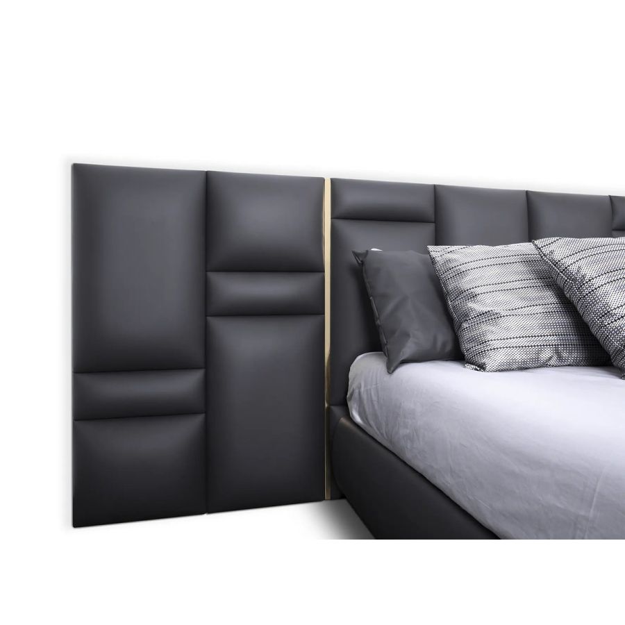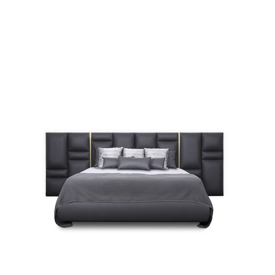 Inspired by the walls of French castles, the Château Bed is a magnificent luxury piece that transforms any bedroom design into an exclusive chamber fit for royalty. Crafted with exquisite leather upholstery and elegant polished brass bars, this designer bed features a modern headboard that makes a striking statement in any setting.