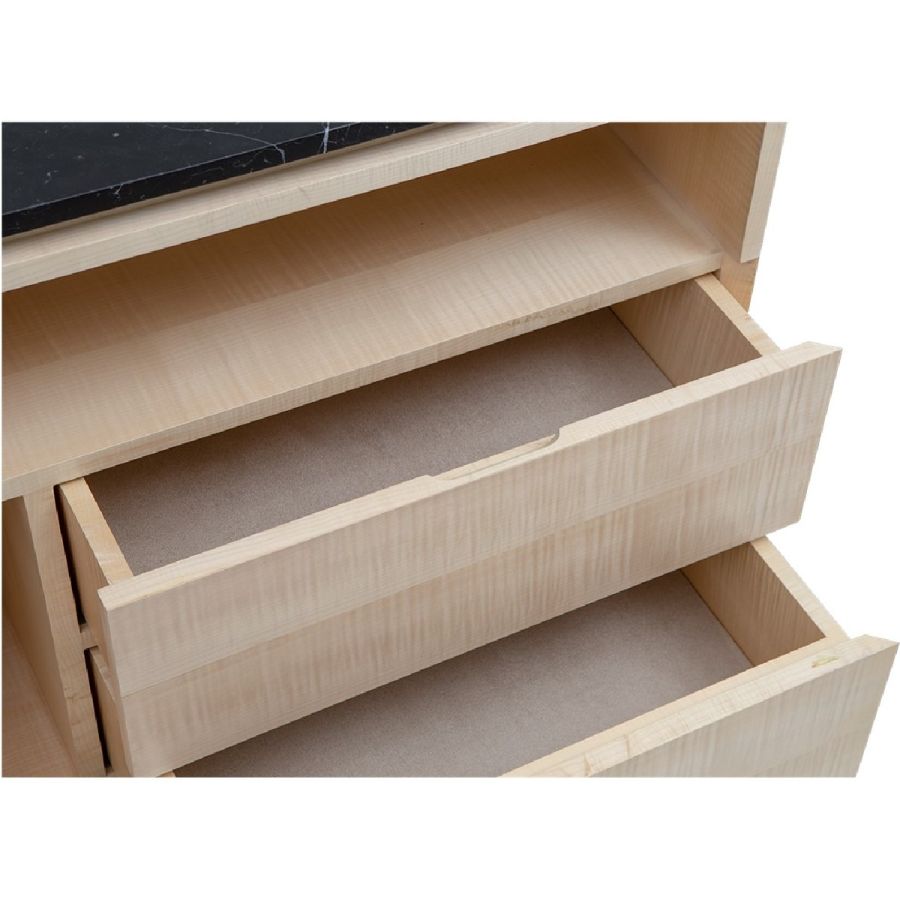 Certified Mahogany hardwood. Solid marble top. Double ultra-suede lined drawers with easy glide. For residential use only. Commercial use is classified as Special Order Design (SOD), and alternative materials may be required. Contact us for details.