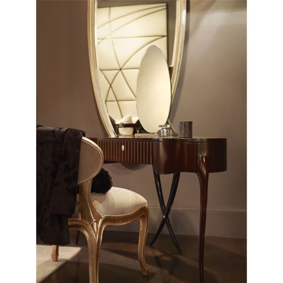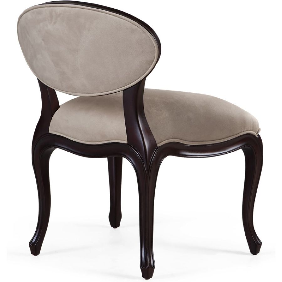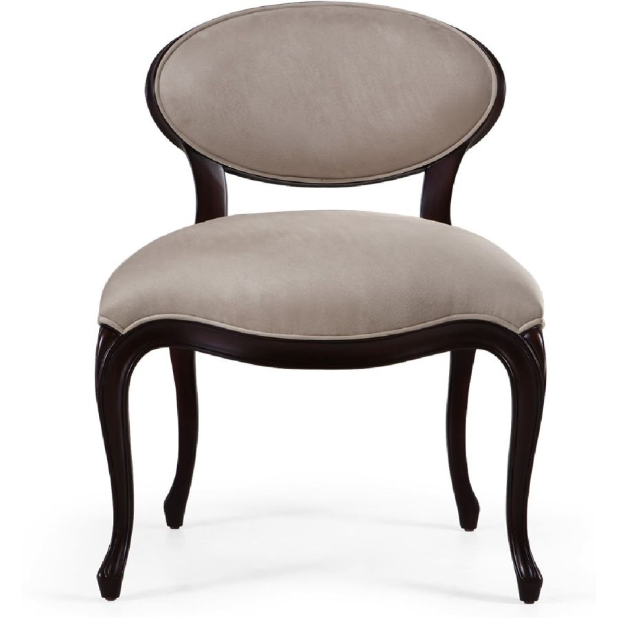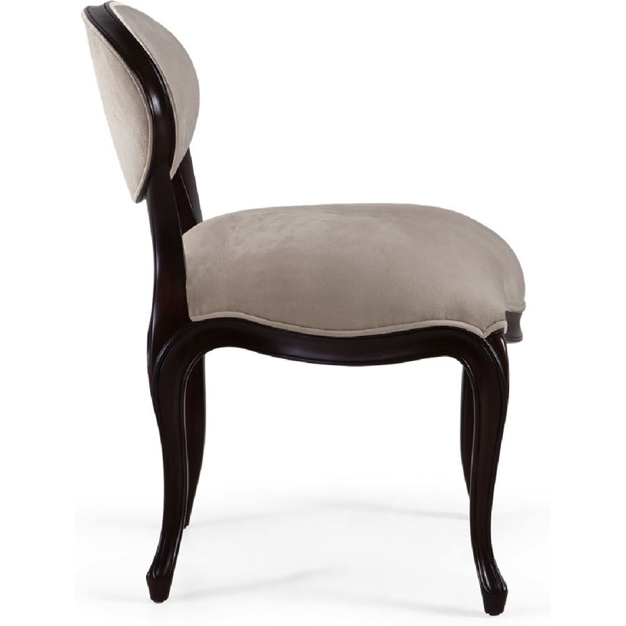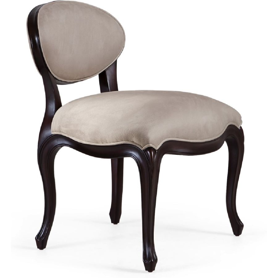 Admired for its remarkable lines, this chic accent chair graces any lifestyle with its sweeping curves. Ideal as a dining chair, vanity seat, or just as a beautiful occasional corner piece.