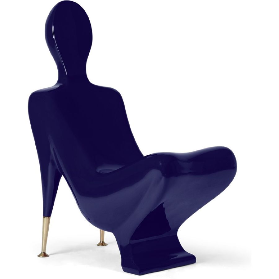 In the form of a figure in yoga pose, this beautiful piece is crafted in resin into a surprisingly comfortable Modernist accent chaise. The subtle brass arms bring elegance to this highly original CG creation.