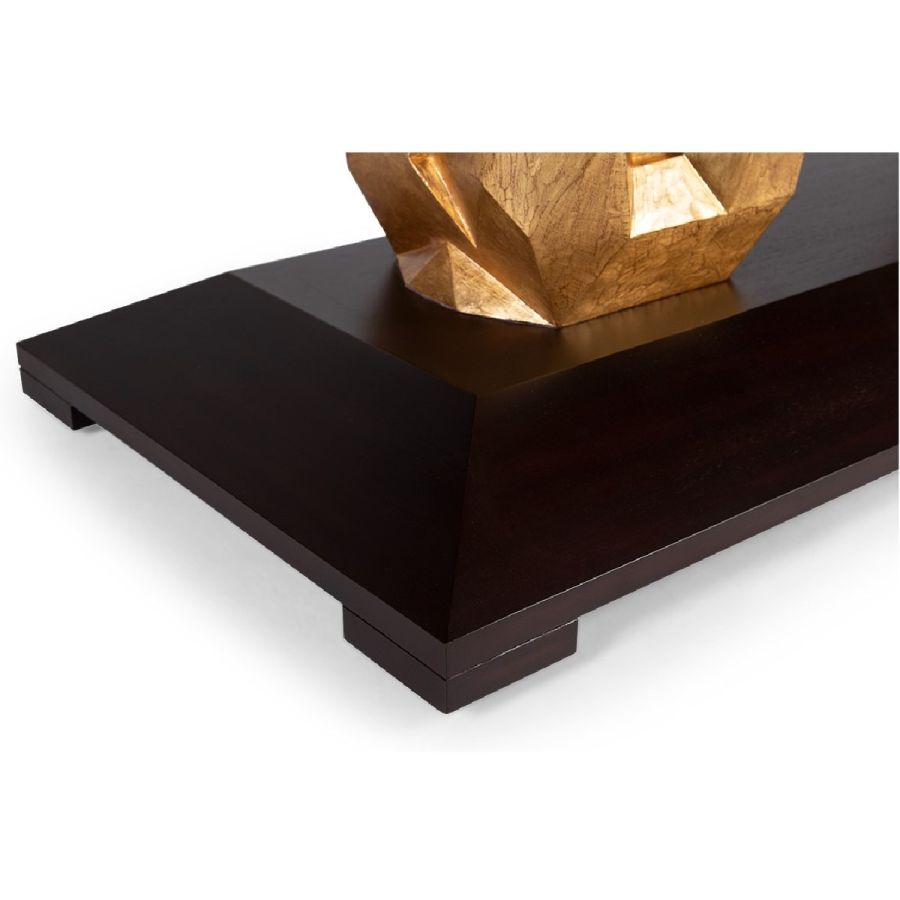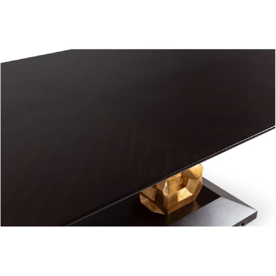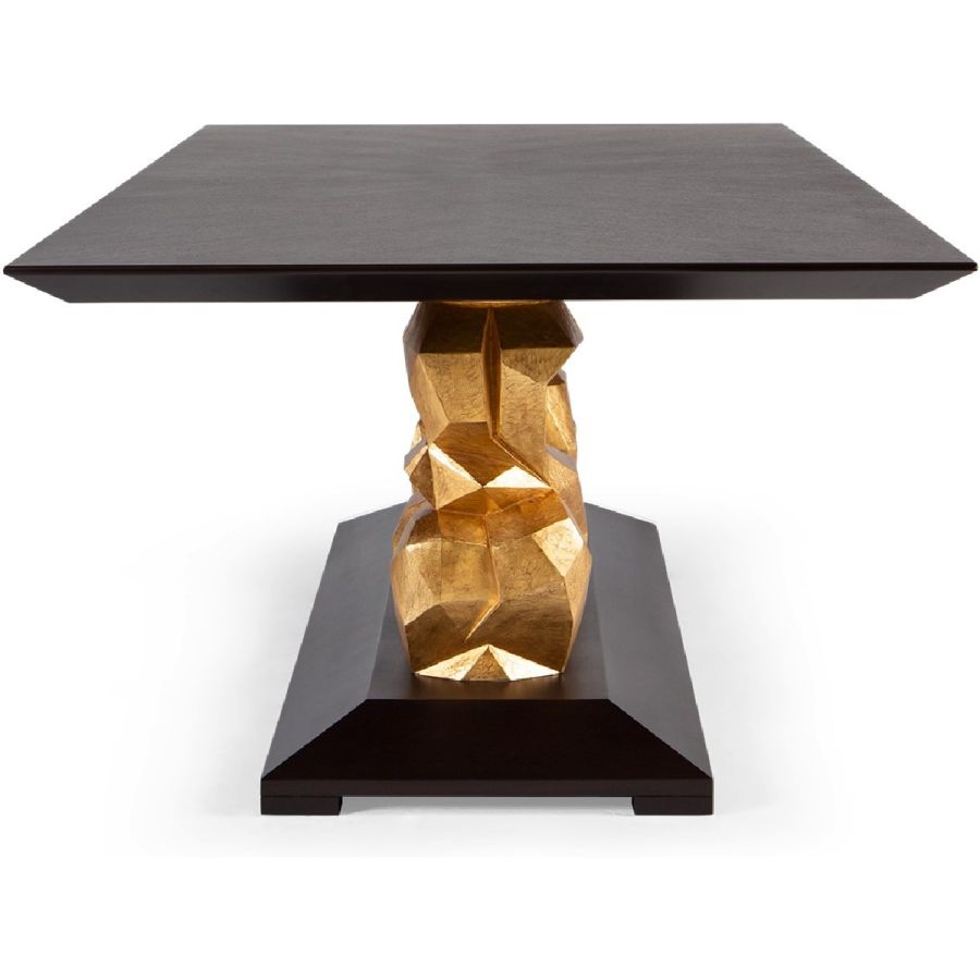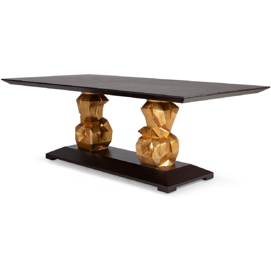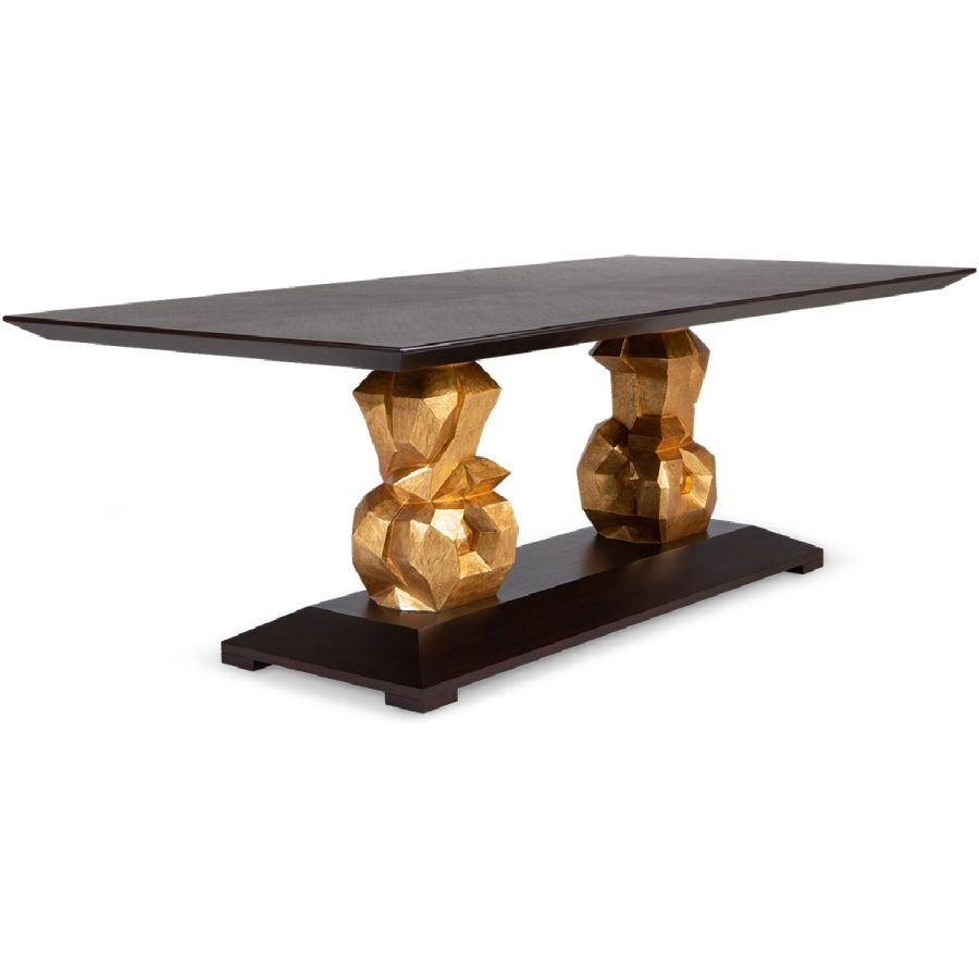 A captivating dining table design that adds practicality to glamour for a truly wonderful dining experience. The hand-sculptured mahogany bases support a veneered cantilevered table top.