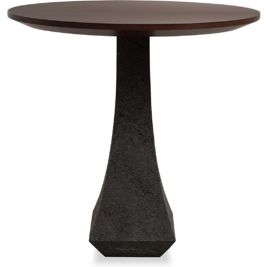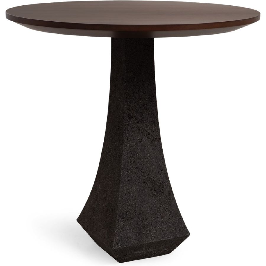 Certified Mahogany hardwood. Hand-sculptured volcanic stone base. Veneered Mahogany top. For residential use only. Commercial use is classified as Special Order Design (SOD), and alternative materials may be required. Contact us for details.