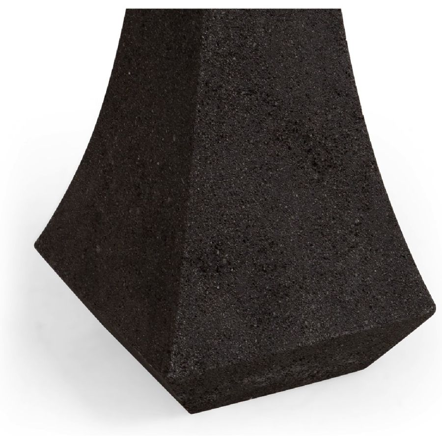 With the grace of an ancient temple, this monolithic side table is fittingly sculptured in Andesite temple stone mined from the volcanic foothills in Java, with a mahogany wood top crowning the base.