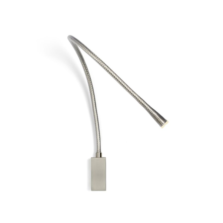 An iconic Contardi model, Flexiled is available in steel and leather versions. In the metal model, the flexible arm is covered with a woven steel mesh, then wrapped in a transparent sheath. The latter version is inserted into a leather sheath with double stitching on the sides.