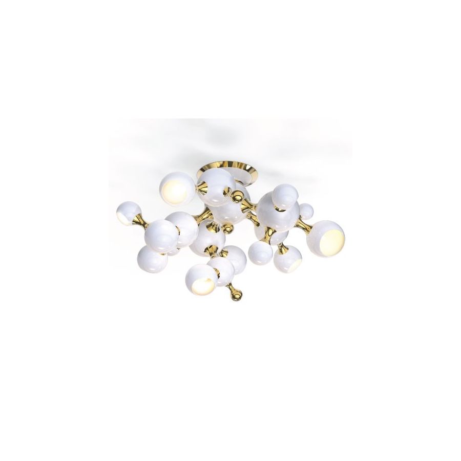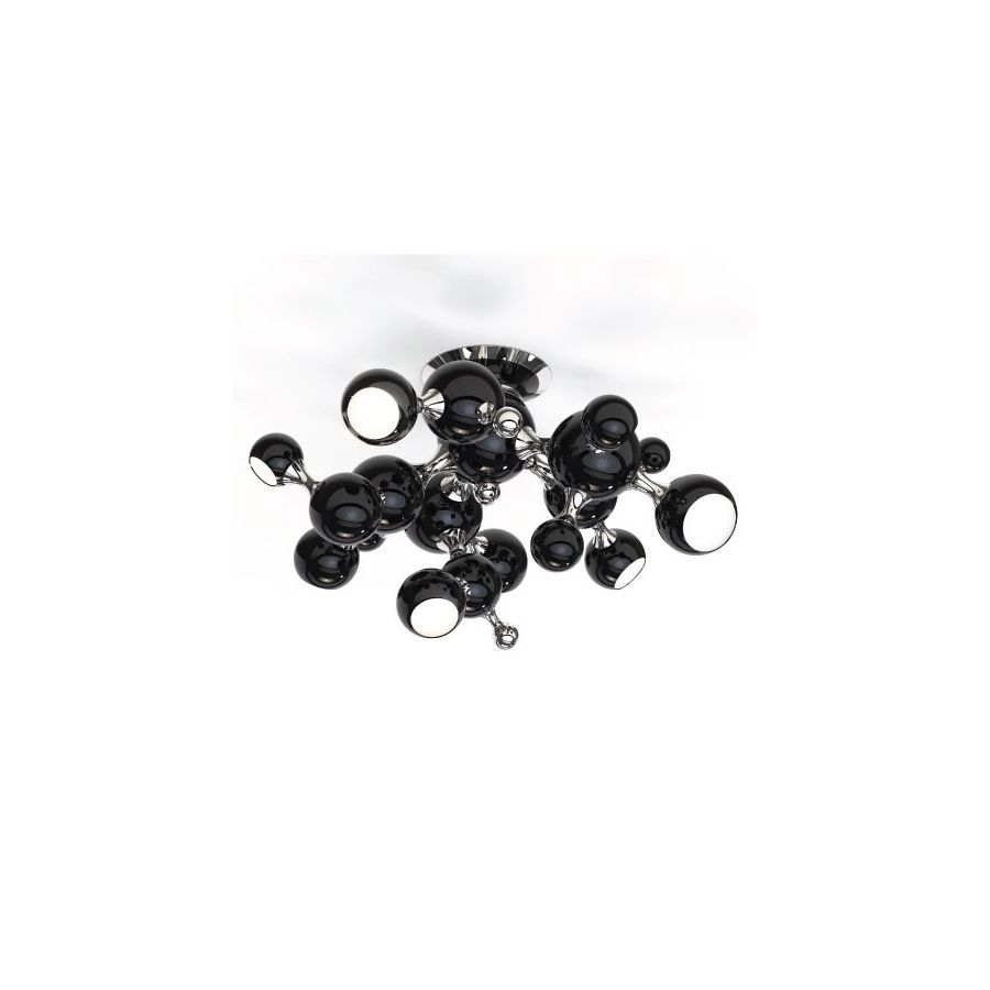 Atomic ceiling lamp is inspired by the molecular composition of the atom, thus representing a new found interpretation of the mid-century modern era. With a set of spotlights all arranged much similar to molecular forms, this modern ceiling light comes to redefine what mid-century lighting is all about. Handmade in brass and steel by Portuguese artisans, Atomic ceiling light boasts an exquisite gold-plated finish on the body, while the shades are lacquered a glossy black on the outside and a gold powder paint on the inside. It can be used as a suspension lamp in a modern entryway, and it also works beautifully as a bedroom ceiling lamp, especially in kids’ bedrooms.