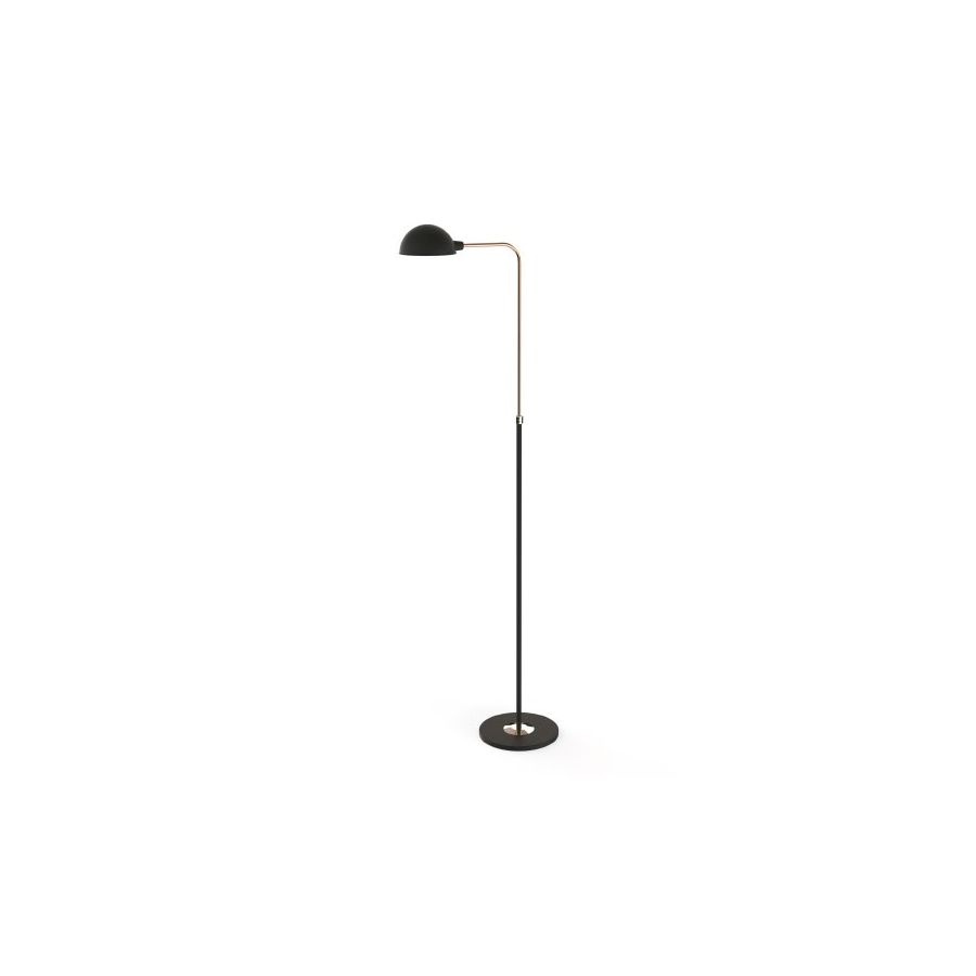 Inspired by the amazing personality of Herbie Hancock, Herbie floor lamp provides a brilliant warm vibe to every mid-century modern room. With a structure handmade in brass, its matte black exterior is complimented by a matte white interior shade. The standing lamp offers the possibility to regulate its direction and height from 47, 24“ to 63 inches. Ideal for a variety of styles and with a minimalist style, this modern light will make a statement next to any mid-century accent chair, chaise or sofa to give your interior design a contemporary style.