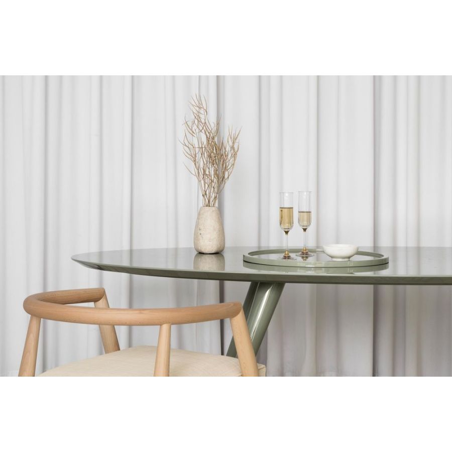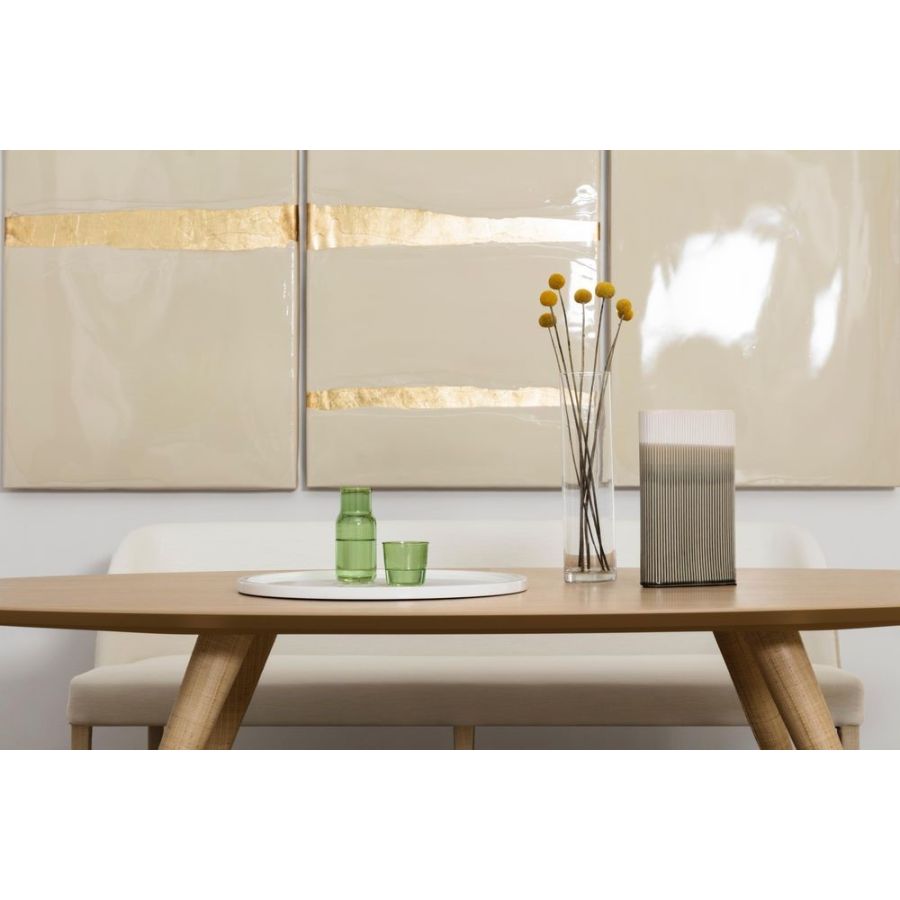 Okrągła, kwadratowa lub prostokątna, taca Finn jest wszechstronna, dostępna w różnych kolorach lakieru z palety DOM Edizioni. W Collezione Riviera wierzch jest pokryty rafią.