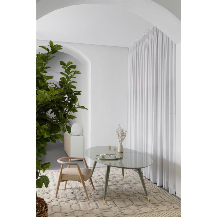 Taca Finn jest dostępna lakierowana matowo lub na wysoki połysk w szerokiej gamie kolorystycznej, zarówno w wersji okrągłej, jak i kwadratowej. Projekt Finna w wersji Collezione Riviera ma na wierzchu pokrycie z rafii.