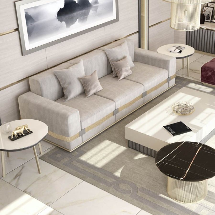 The Elledue Clio 3-Seater Sofa is a refined contemporary piece that effortlessly combines elegance with comfort. With a length of 259 cm, it provides generous seating space while maintaining a sleek and modern silhouette. The light gray upholstery enhances its versatility, making it a perfect addition to sophisticated interiors. Crafted with precision and high-quality materials, this sofa embodies Elledue’s commitment to exceptional craftsmanship and timeless design.