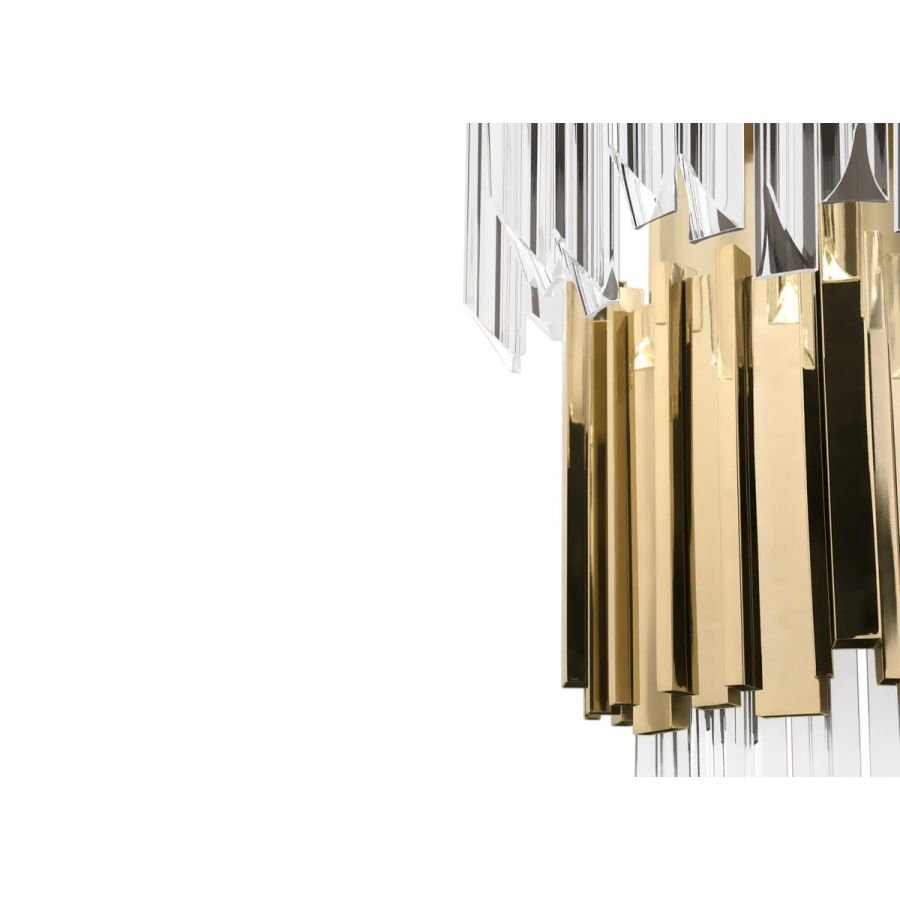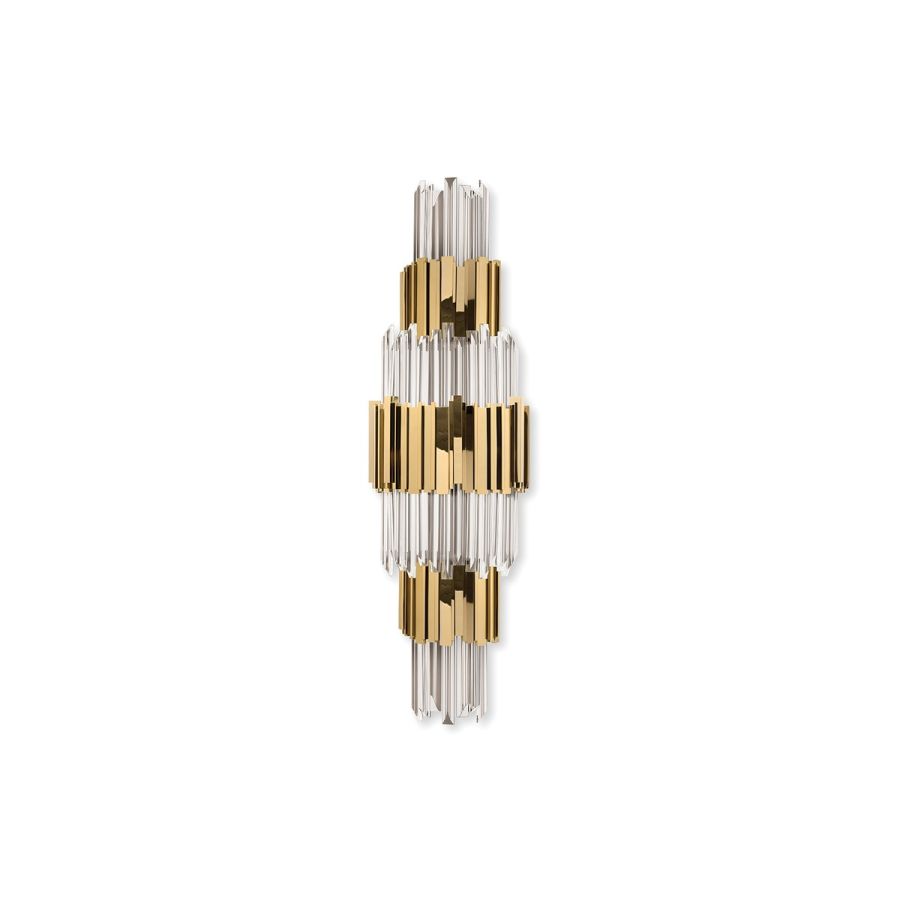 The Empire II Wall Lamp pays homage to the elegant and extravagant lines of the Empire collection, making it suitable for the most exquisite projects, whether residential or hospitality. This noble and sublime wall light is crafted from opulent layers of gold-plated brass and crystal glass, inspiring even more glamour and luxury in any interior decor.