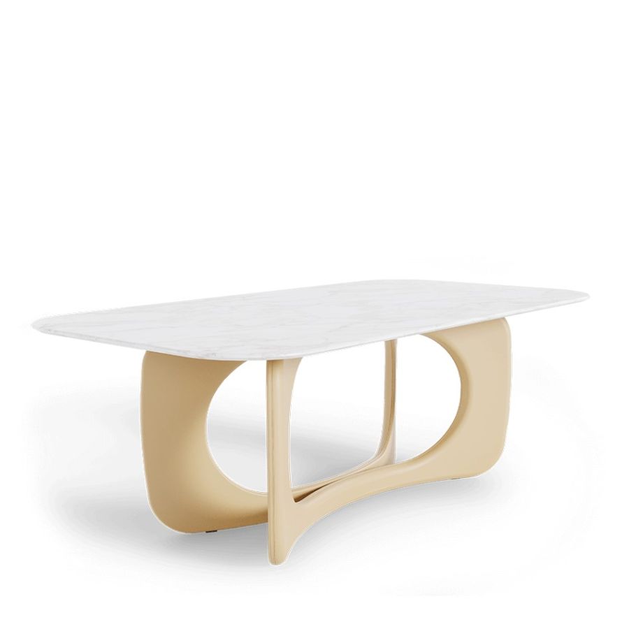 The Eero Dining table is a high-end, sleek, and minimalistic mid-century design piece that will be the crown jewel of your living room. It features clean lines, organic curves, upholstered legs and a beautifull marble top. This table is a sought-after addition to every elegant timeless modern homes.
