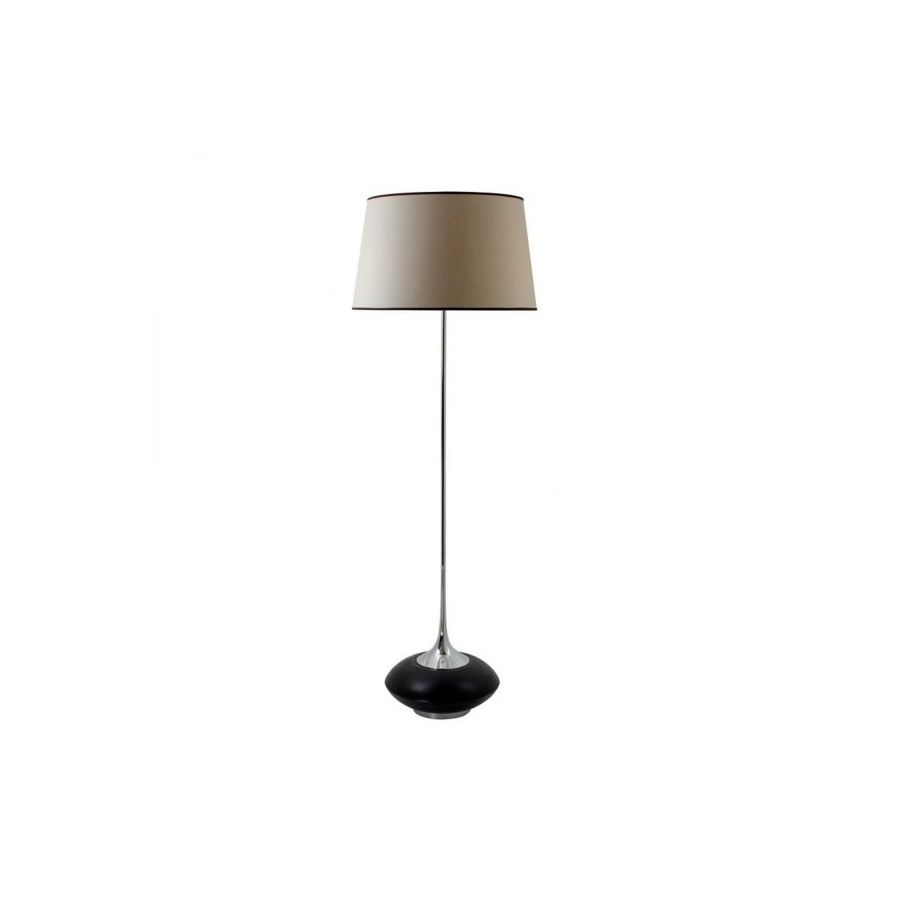 Floor lamp with oak wood base painted wenge and brass stem with chrome finish. Lampshade in cotton-linen fabric.