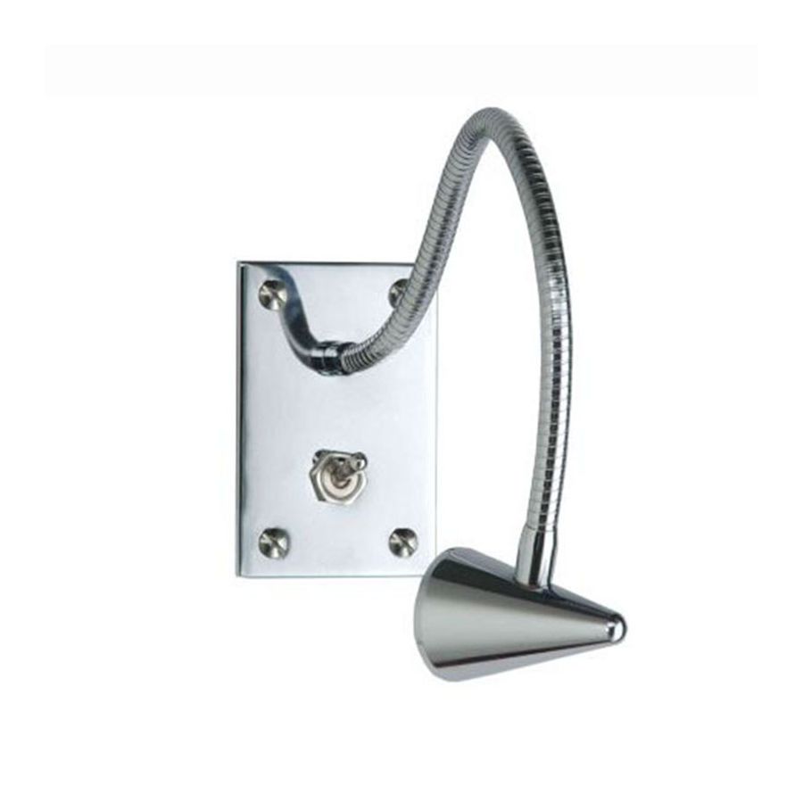 LED reading light in brass chrome finishing with flexible arm. Power supply included.