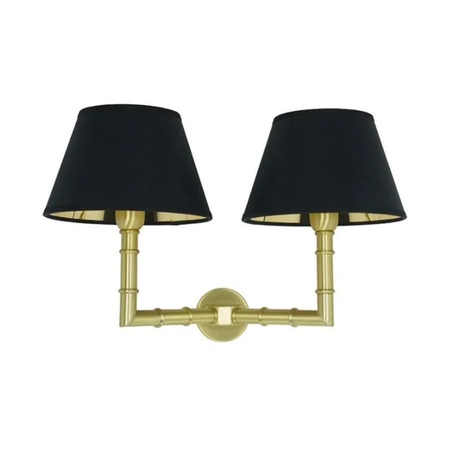 Whether placed in a living room, hallway or bedroom, this wall lamp can transform any room, making it more welcoming and refined. Black chintz fabric shade with gold Pvc interior, fully customizable.