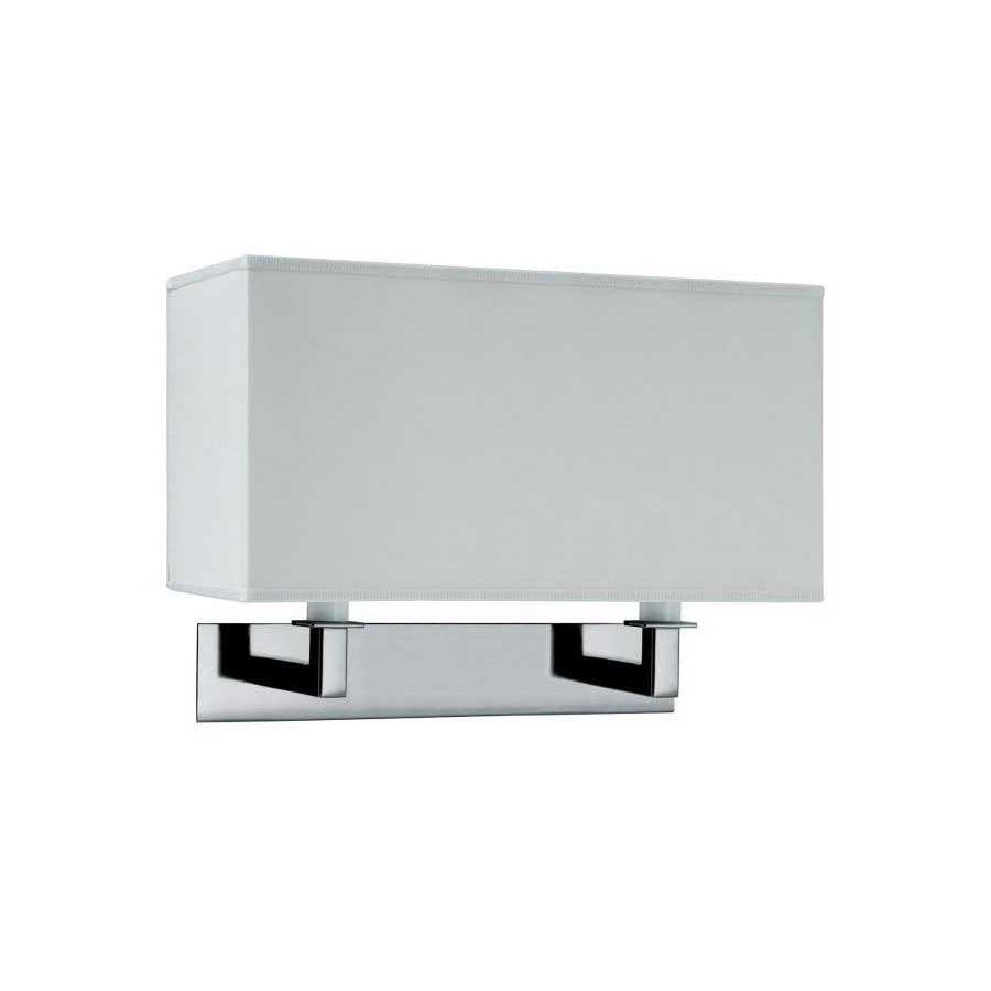 Brass wall lamp in black nickel finish with fabric lampshade.