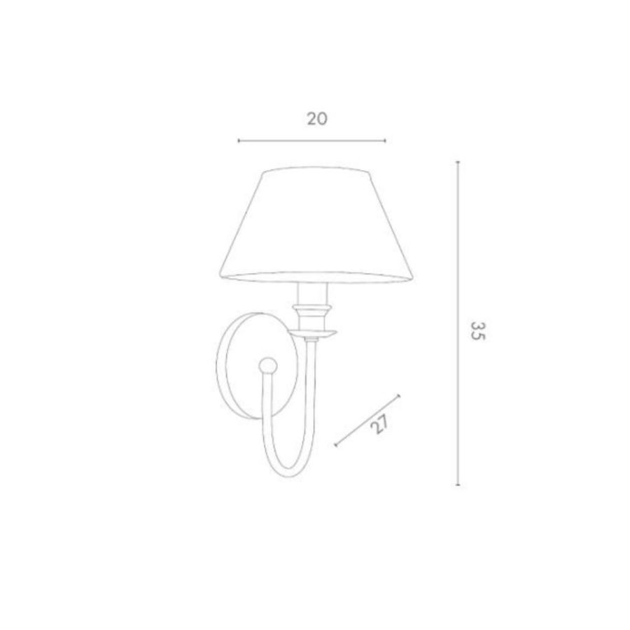 Lamp for wall installation mounting bracket for fixing at wall. Structure in brass and fabric lampshades.