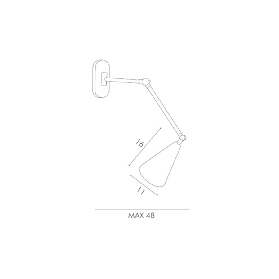 Wall lamp with adjustable and articulated arm in chrome-plated brass with metal reflector.