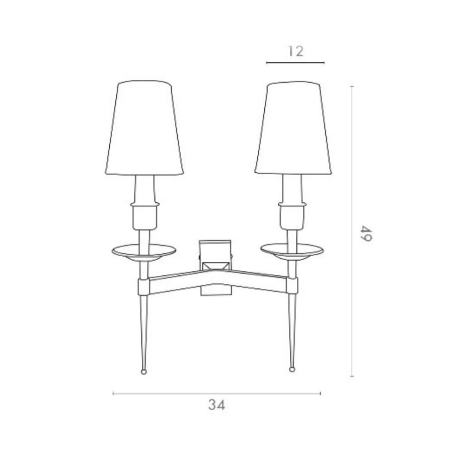 Lamp for wall installation mounting bracket for fixing at wall. Double arms structure in brass and metal with lampshades.