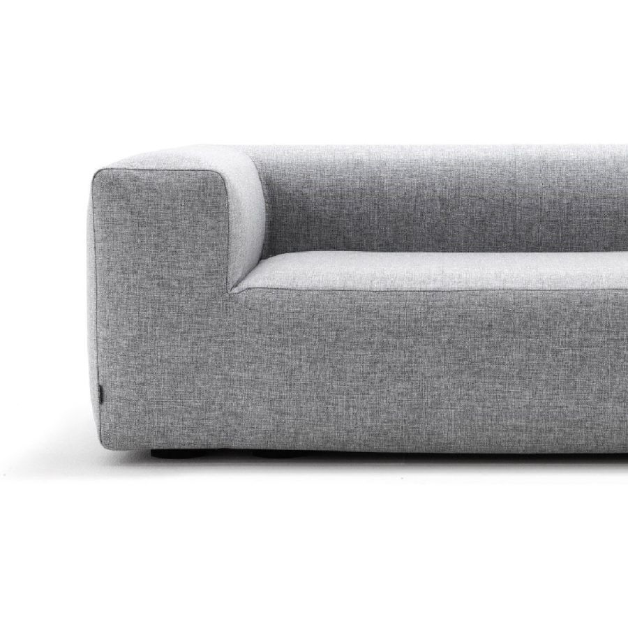 This sofa expands into a wide, low silhouette. Plush padding offers the comfort of interiors in outdoor living. With no legs, it stands as a monolithic block of softness, embodying strength, balance, and refined relaxation.