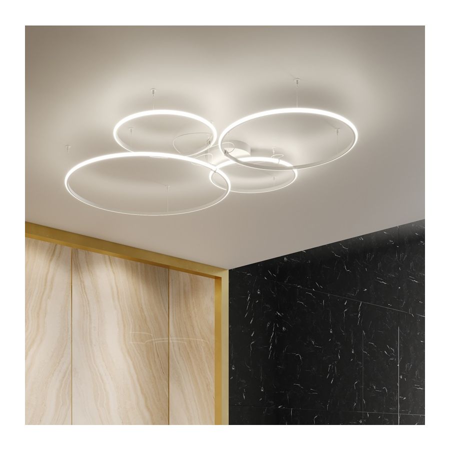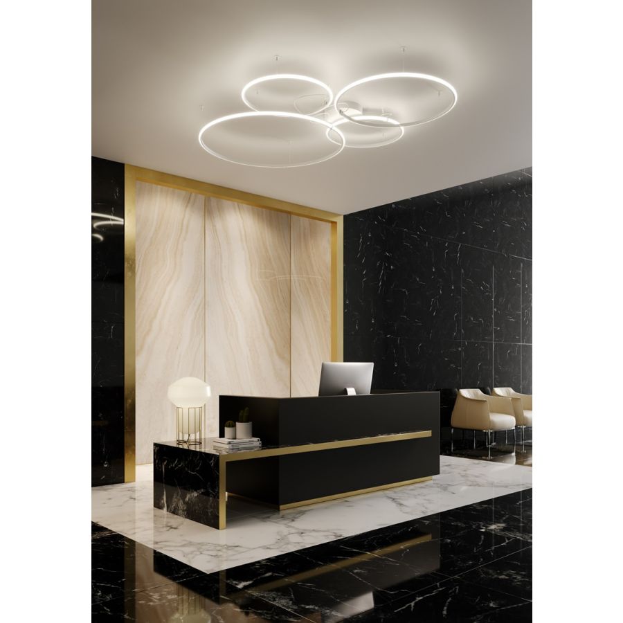 Olympic to kolekcja okrągłych, białych, powlekanych aluminiowych lamp wiszących oraz opraw ściennych i sufitowych. Źródło światła LED znajduje się na zewnętrznym pierścieniu, który jest dostępny w różnych średnicach we wszystkich wersjach, tworząc bezpośrednie i pośrednie rozproszenie światła. Lampy wiszące mogą być także splatane ze sobą, tworząc oryginalne kształty i kompozycje, między innymi dzięki łatwemu systemowi regulacji długości kabla.