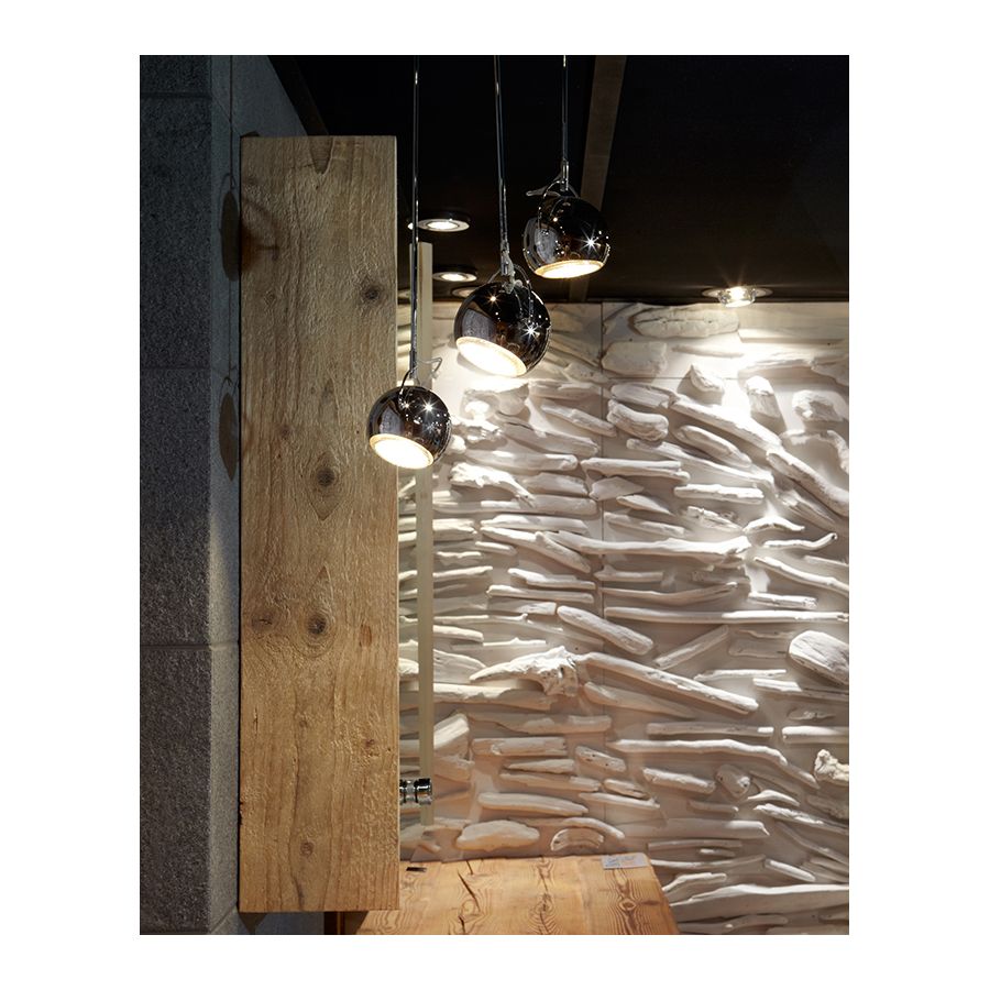 Lampa wisząca Beluga Steel w wersji pojedynczej jest dostępna z regulowanymi dyfuzorami w trzech różnych rozmiarach. Cała lampa jest w polerowanym chromie i ma bardzo nowoczesny i elegancki wygląd. Wytwarzane światło jest skierowane precyzyjnie w dół i tworzy ciepłą atmosferę w całym otoczeniu. Jest idealna do kuchni lub nad stolikami w restauracji czy barze.